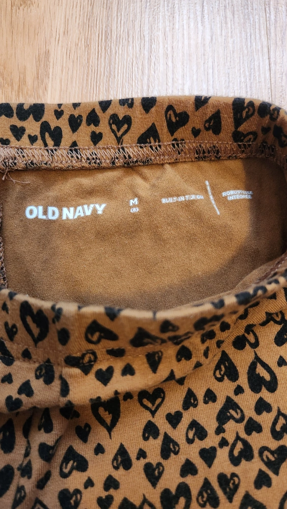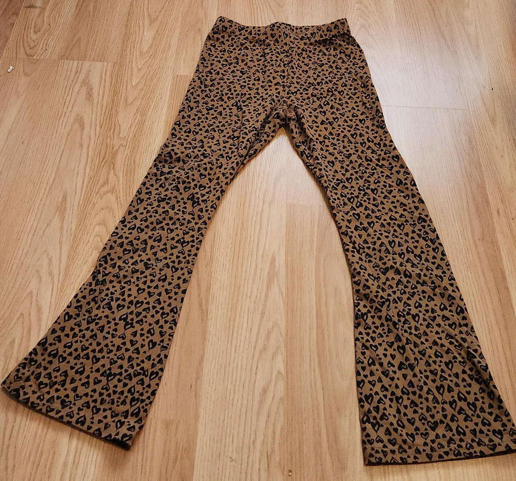 Cute Old Navy flare leggings in size medium (8). They feature a fun heart print on a brown background. Worn maybe once.