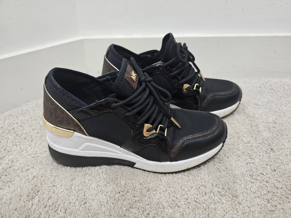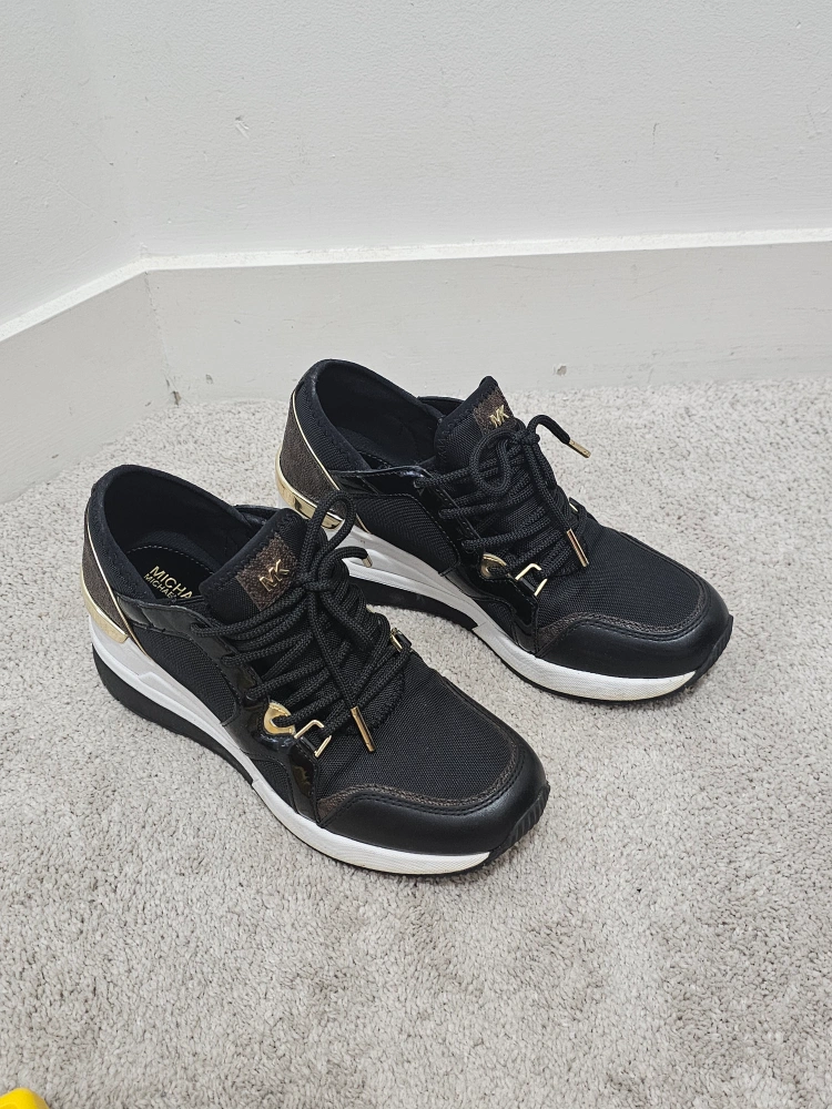 Michael Kors sneakers in black with gold accents! These are in great condition and ready for a new home