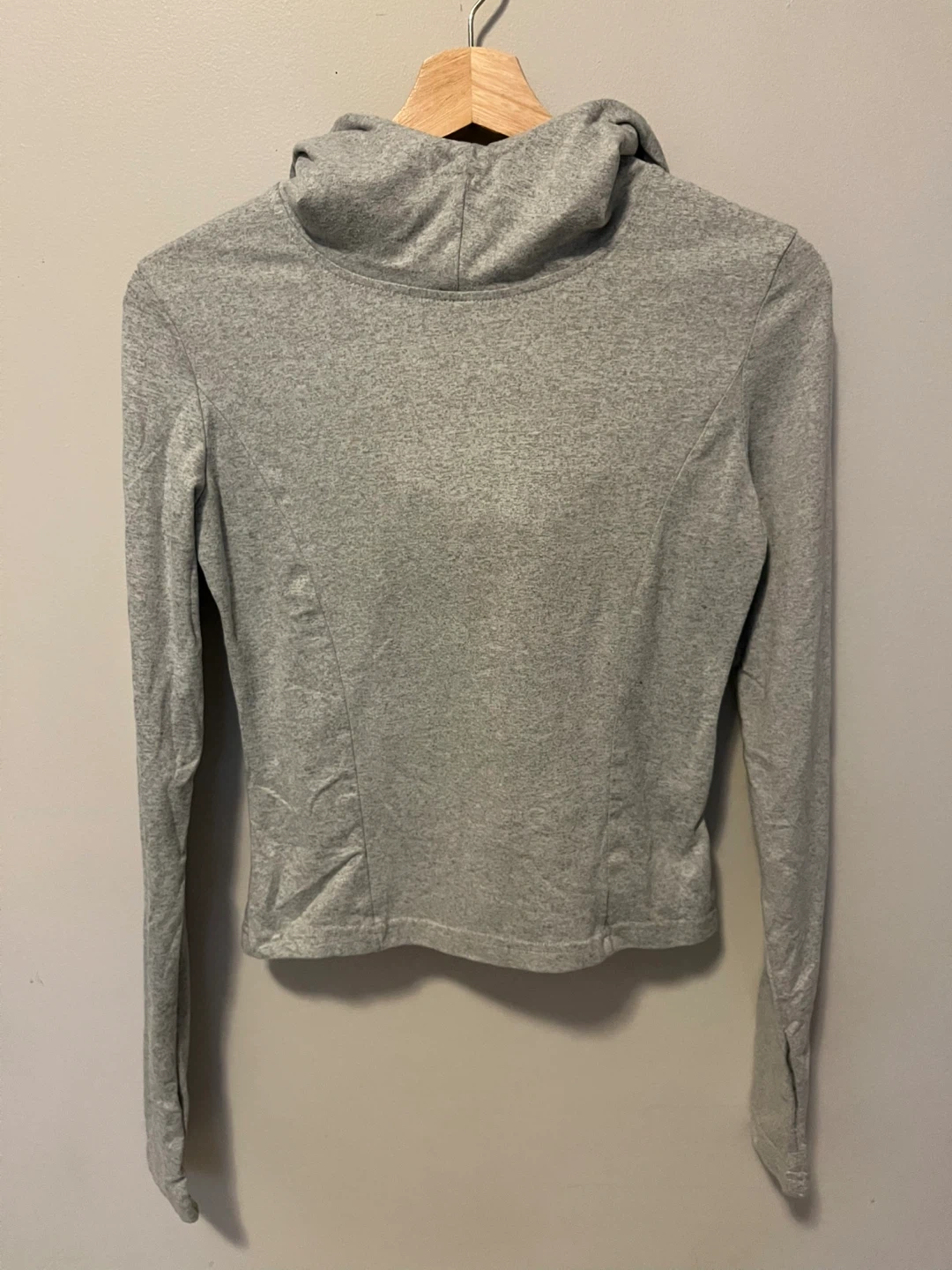 A cozy grey long sleeve hoodie. It's in great condition and ready for a new home! Perfect for layering or wearing on its own