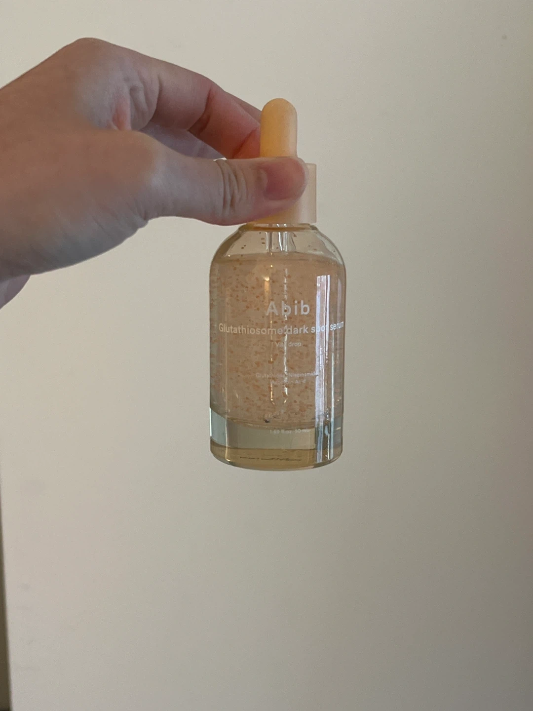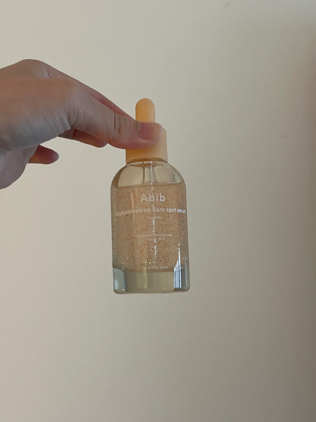 Selling an Abib Glutathione Dark Spot Serum Vita Drap. It's a facial serum designed to apply a few drops to the face and pat lightly. The expiration date on the product is 2027 October 01. Made in Korea