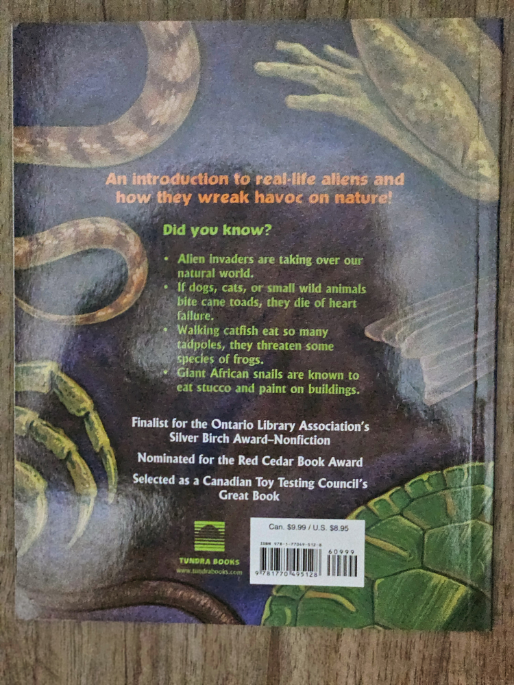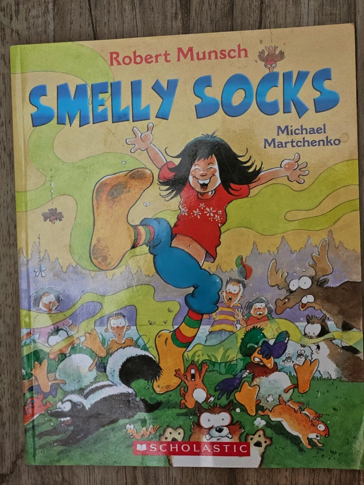 Selling two books: Robert Munsch's 'Smelly Socks' and 'Alien Invaders: Species That Threaten Our World' by Jane Drake and Ann Love! They're great reads for kids.