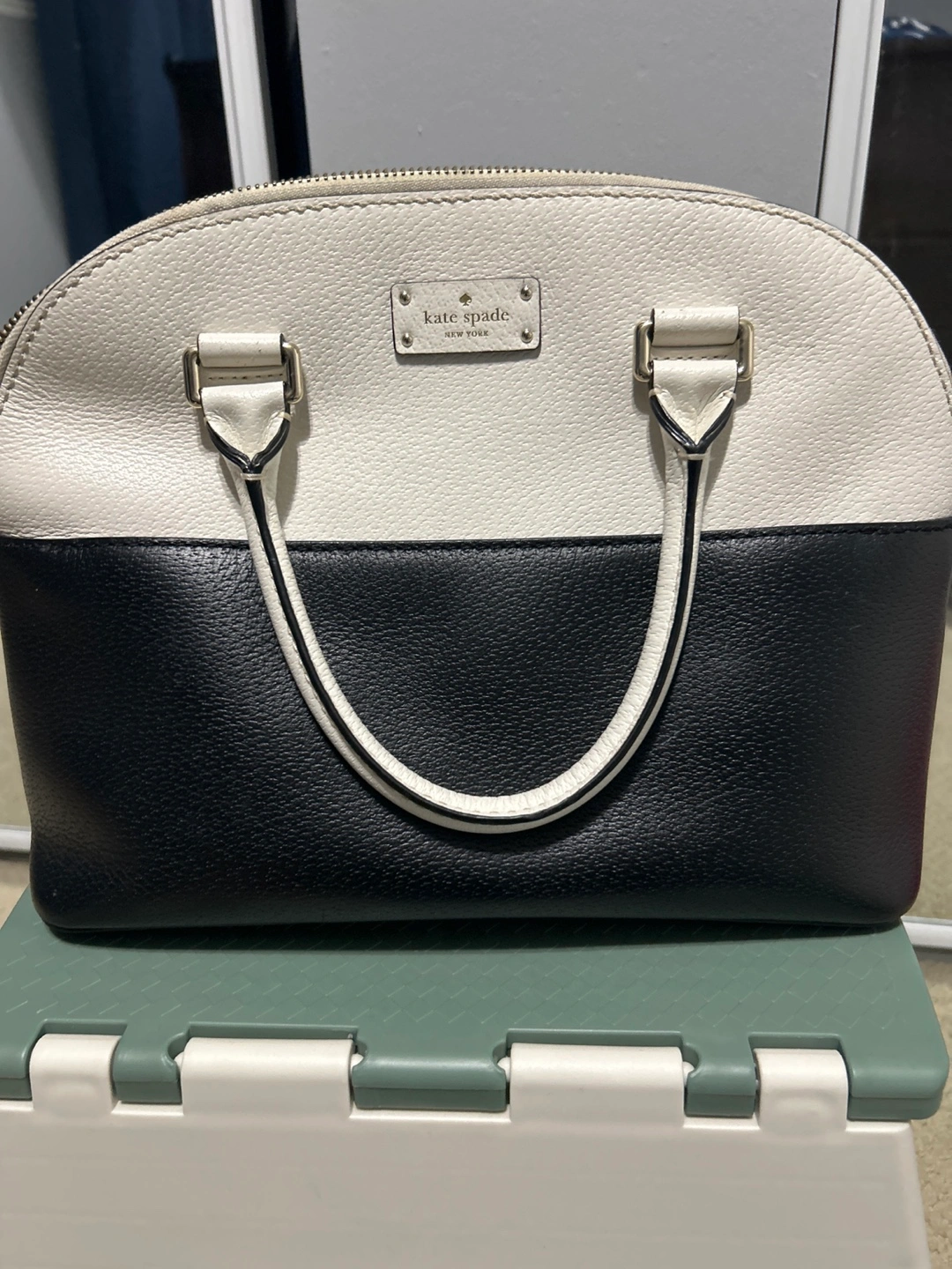 Selling a stylish Kate Spade dome satchel in a classic black and white colour combination. It's in great condition and perfect for everyday use! The bag features a secure zip closure and comfortable handles.