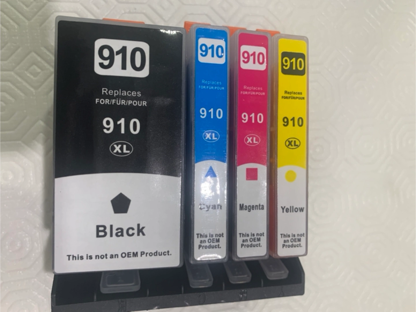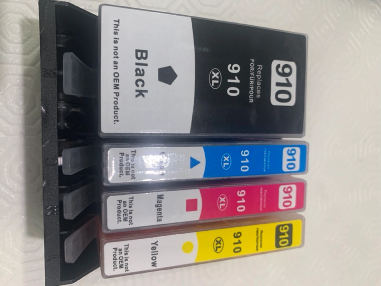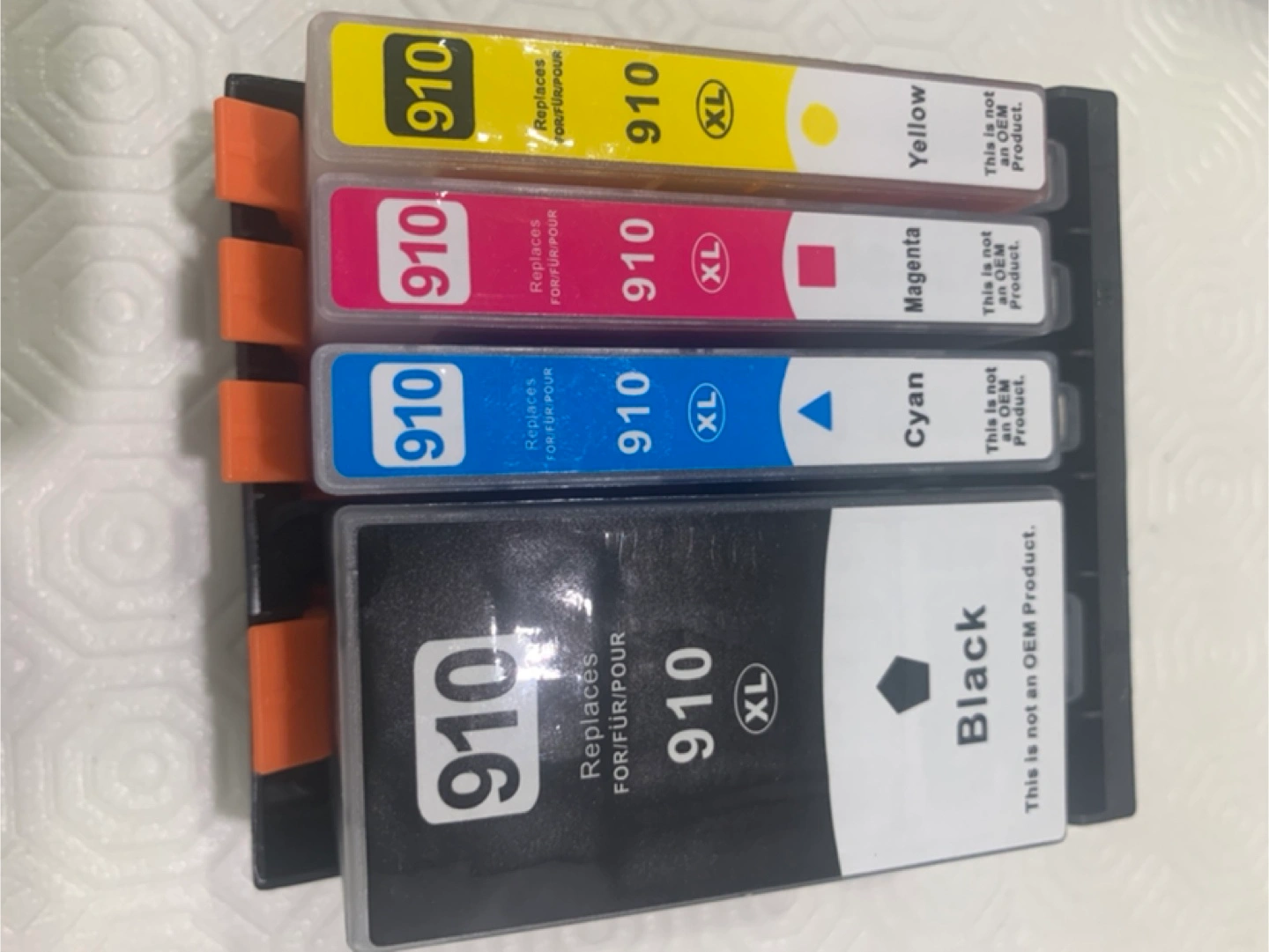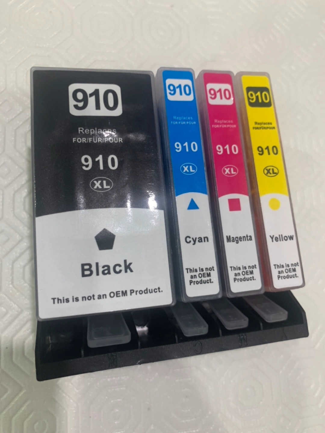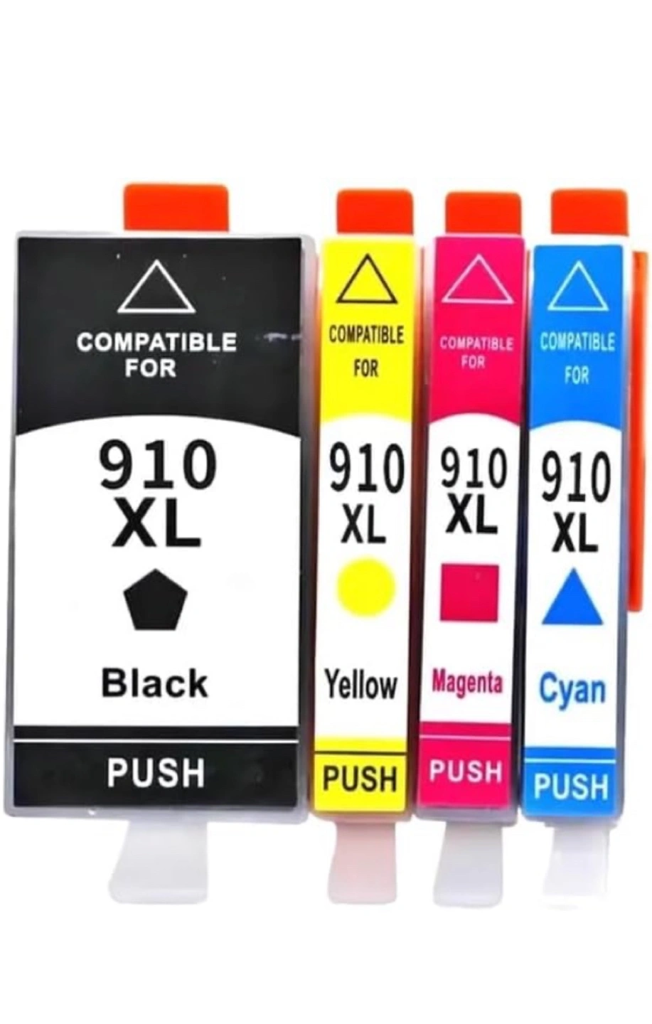 Selling a brand new set of compatible HP 910 XL ink cartridges. This set includes black, cyan, magenta, and yellow cartridges. Perfect for your printing needs!