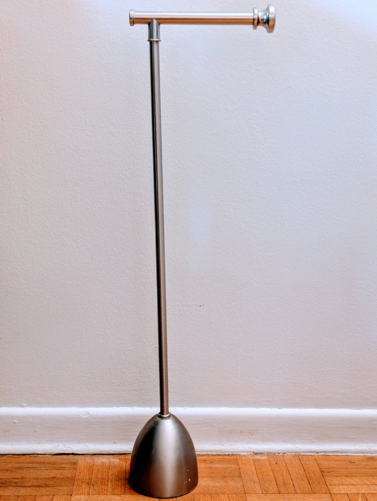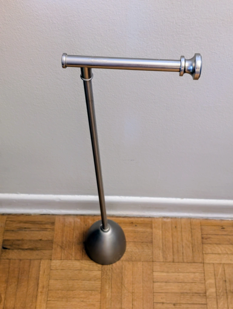 Here's a standing toilet paper holder for your bathroom! It's a sleek and modern design that fits well in any space. It's in great condition and ready to use! Open for trades: Brightening or peptide facial serums and creams, hair treatment, dark purple hair dye, sunscreens, hot eyelash curler, sundress and skirts size XS,S, shoes 6 and men's 9,5 Exact amount of cash only please ๐ŸŒธ Pick up location you can see on the map below ๐Ÿ‘‡