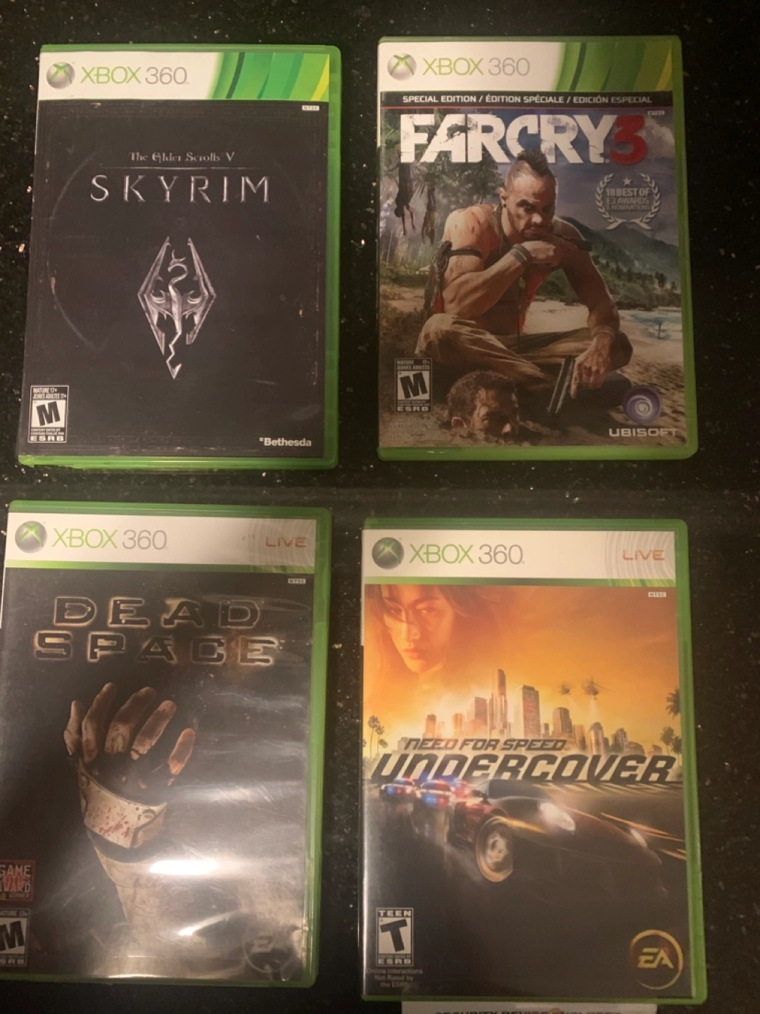 78Selling a few Xbox 360 games! Titles include: - The Elder Scrolls V: Skyrim - Far Cry 3 (Special Edition) - Dead Space - Need for Speed Undercover $5.00 each