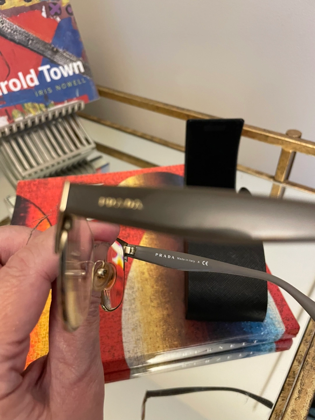 Selling a pair of unisex Prada brand eyeglass frames .