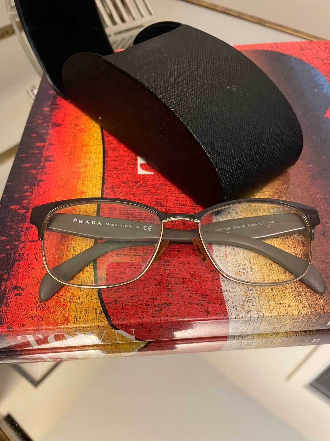 Selling a pair of Prada eyeglasses. They are model VFR 65R, size 53-16. The glasses come with a Prada case.