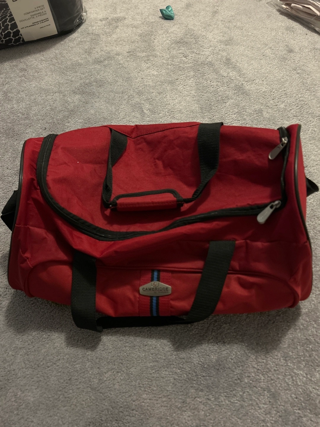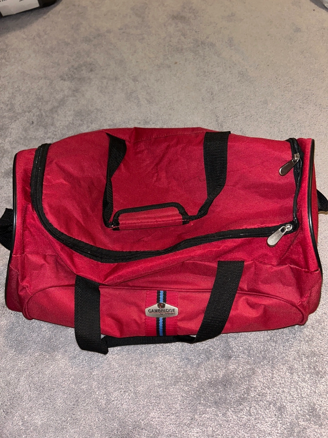 Here's a red duffle bag from Cambridge Travelway! It's in great shape and ready for your next trip to the gym or a weekend getaway