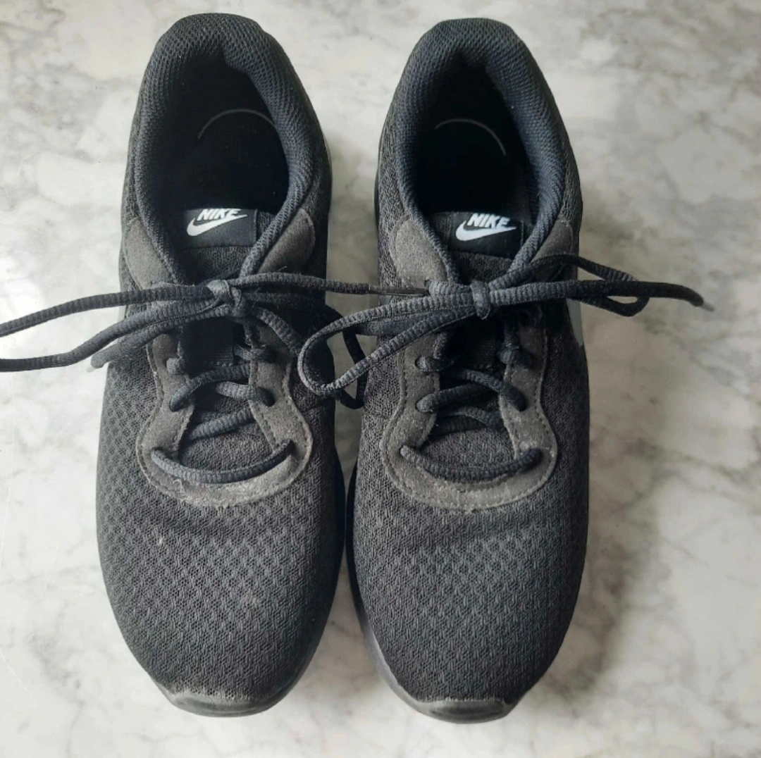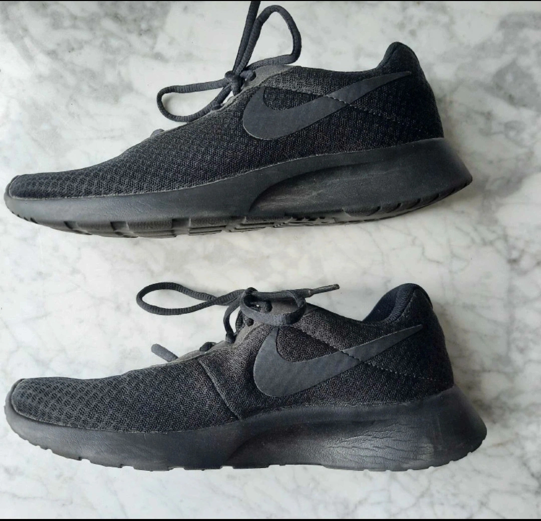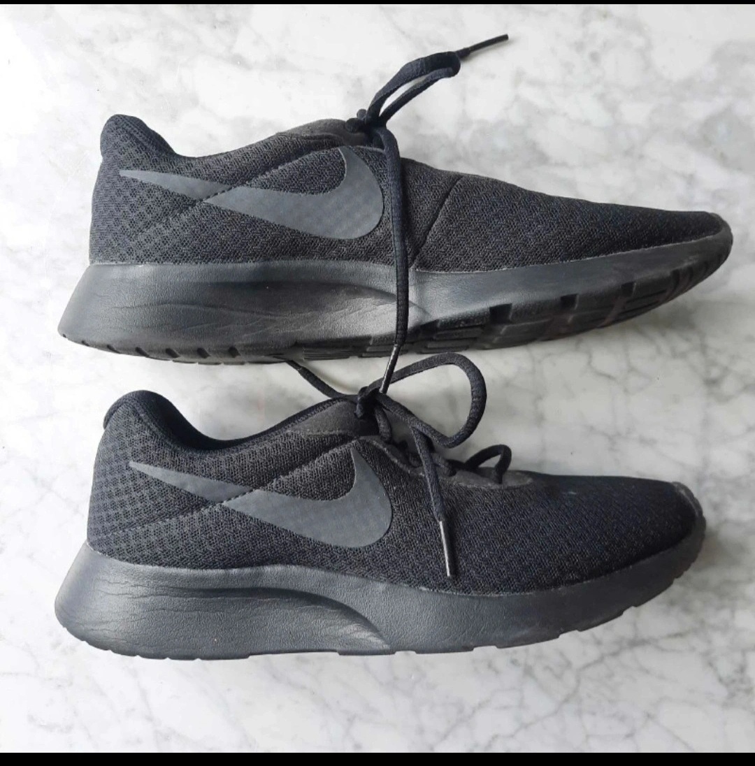 Selling a pair of Nike Tanjun running shoes in black. The size is US 9.5 W. Almost brand new sneakers - No tears or wear on them. The bottom of the shoes have been walked on, but I hardly used them because I had other shoes that I liked more.