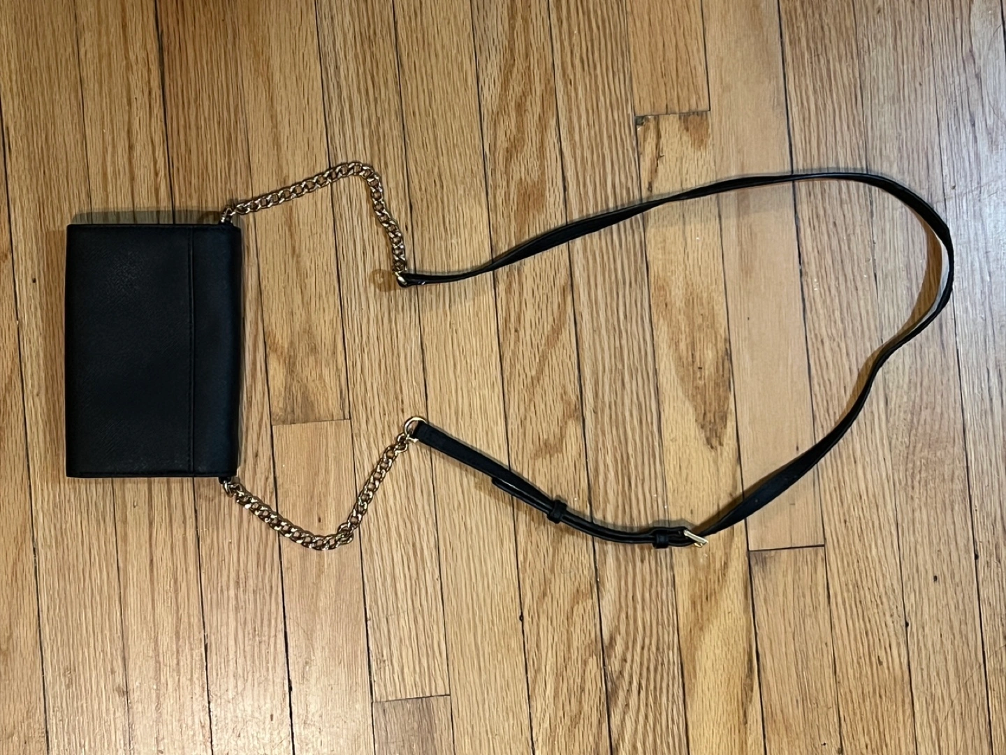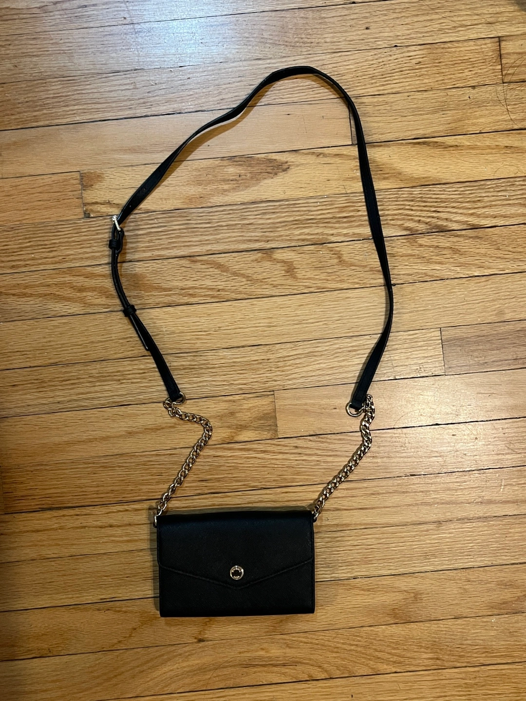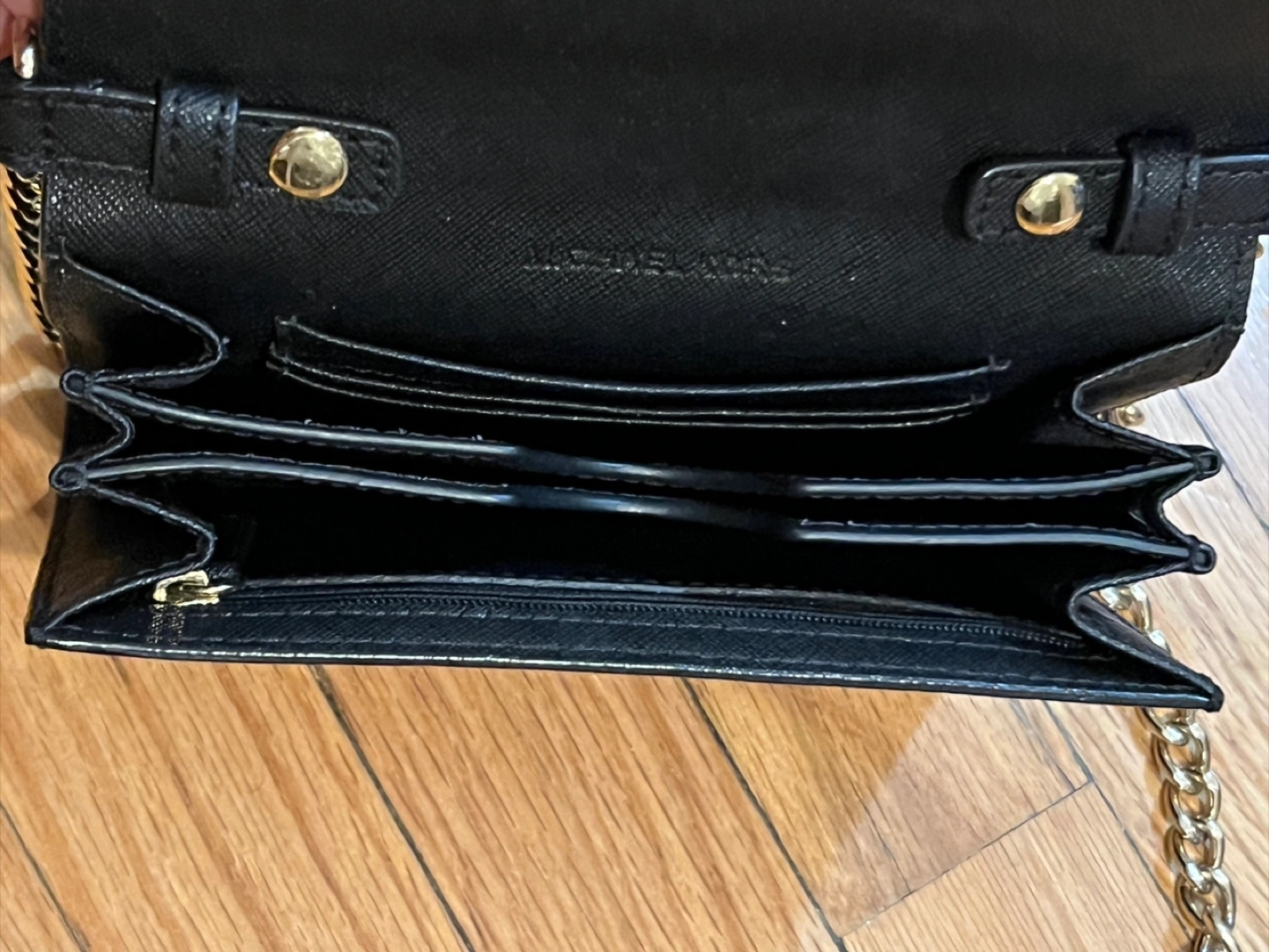 283Like new Michael Kors crossbody bag. It's black with a gold chain strap. Perfect for going out!