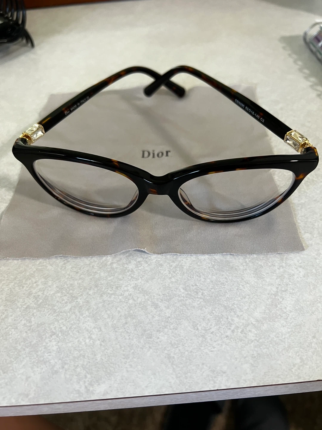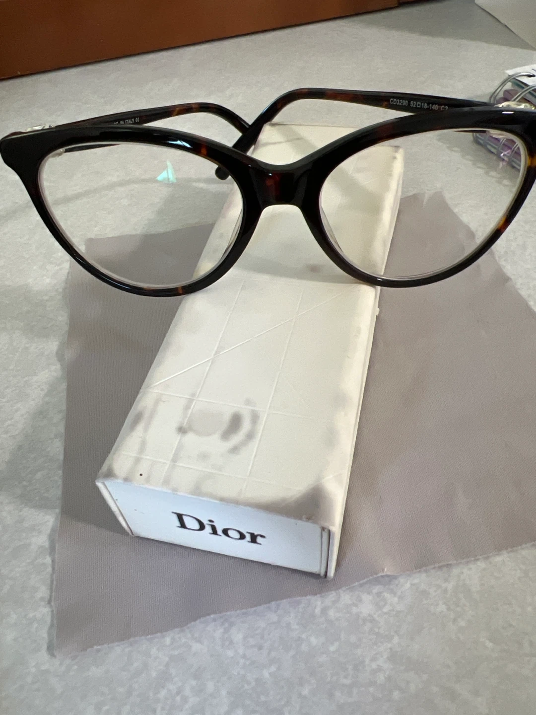 Selling a pair of Dior eyeglasses. These are model CD3290 with size 52-18-140 C2. They look fantastic and come with a Dior cleaning cloth and case!