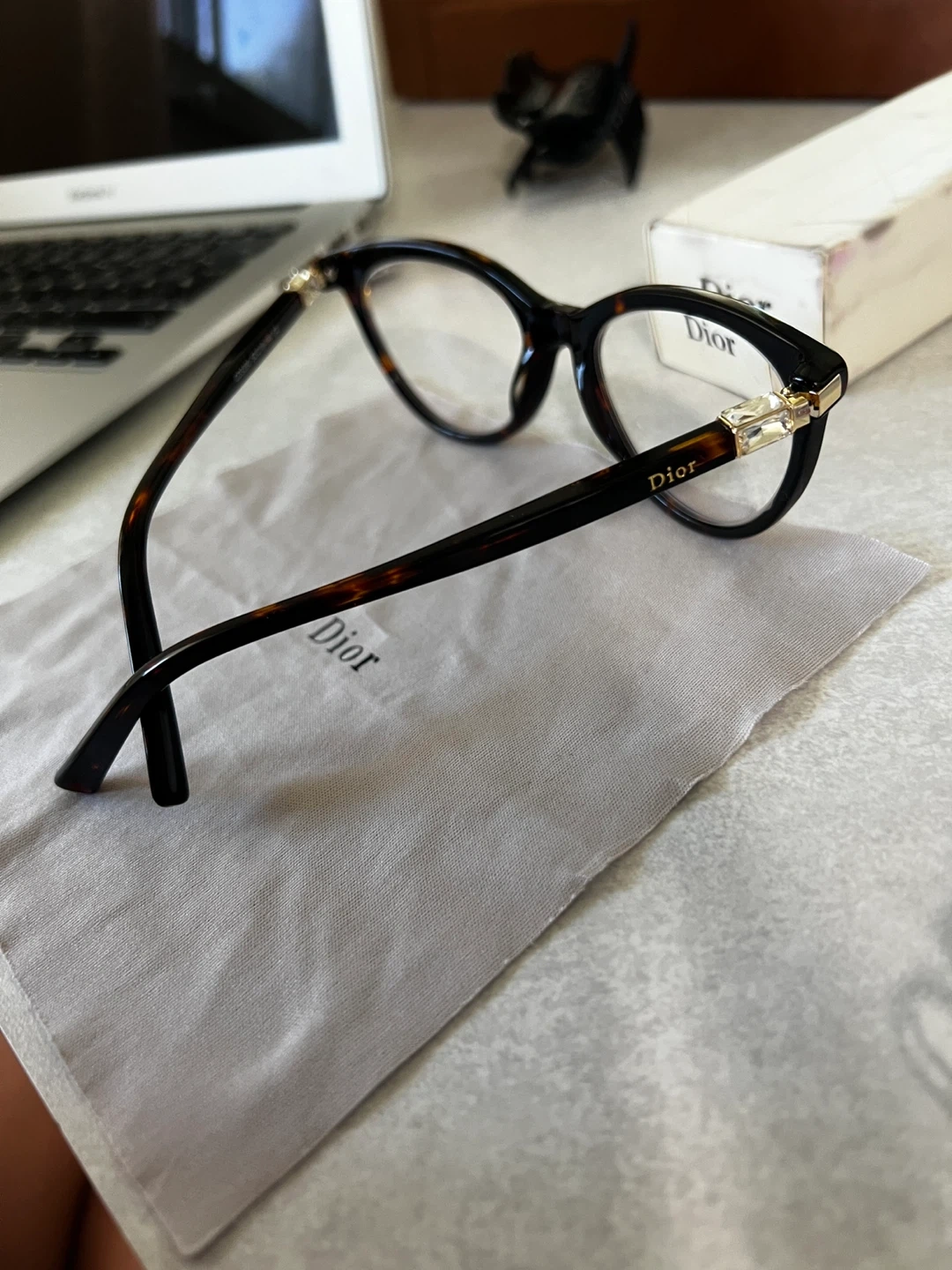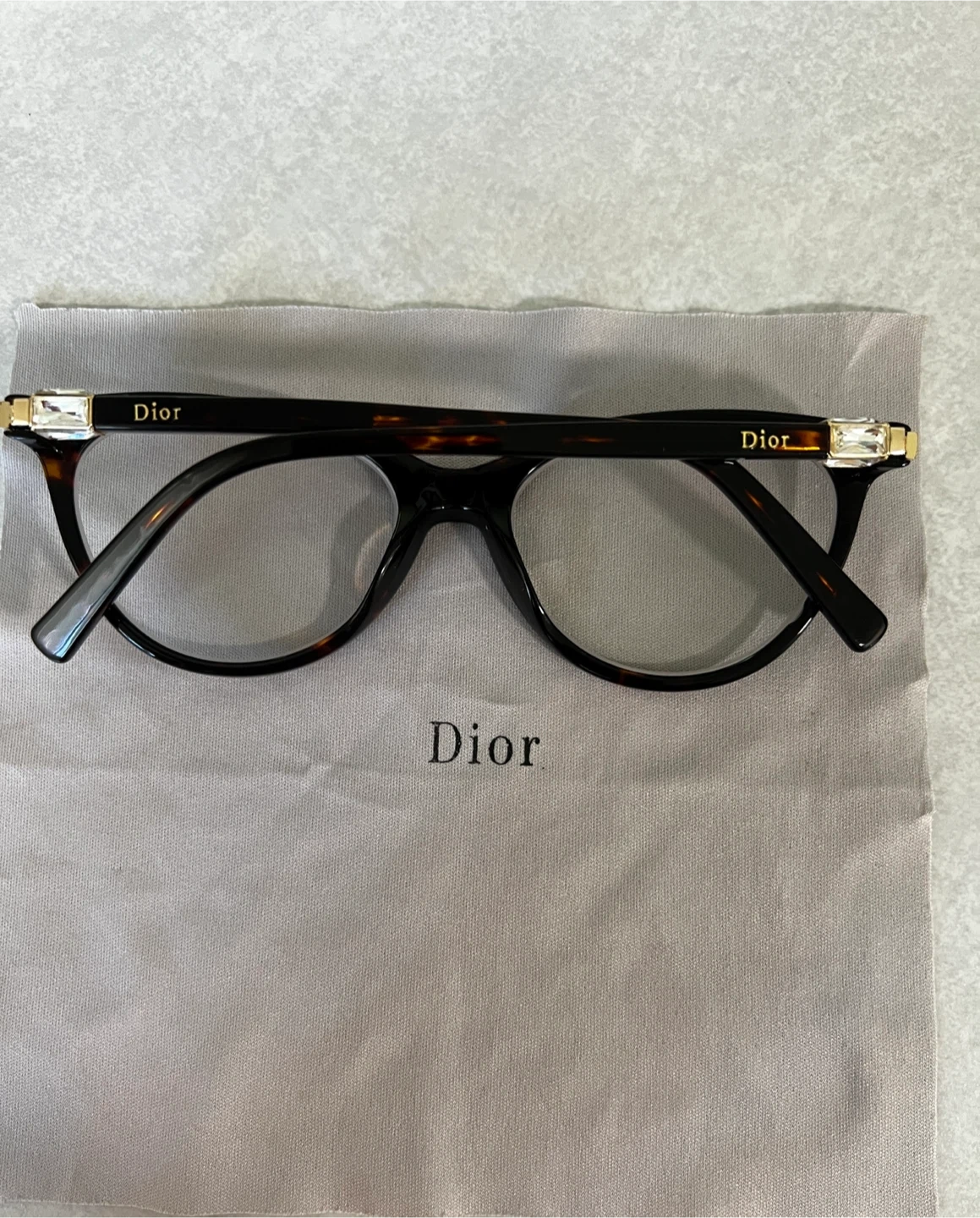 The Dior case is the original, but it’s quite old and has some wear on it. The glasses are still in good shape, but I wanted to be transparent about the condition of the case.