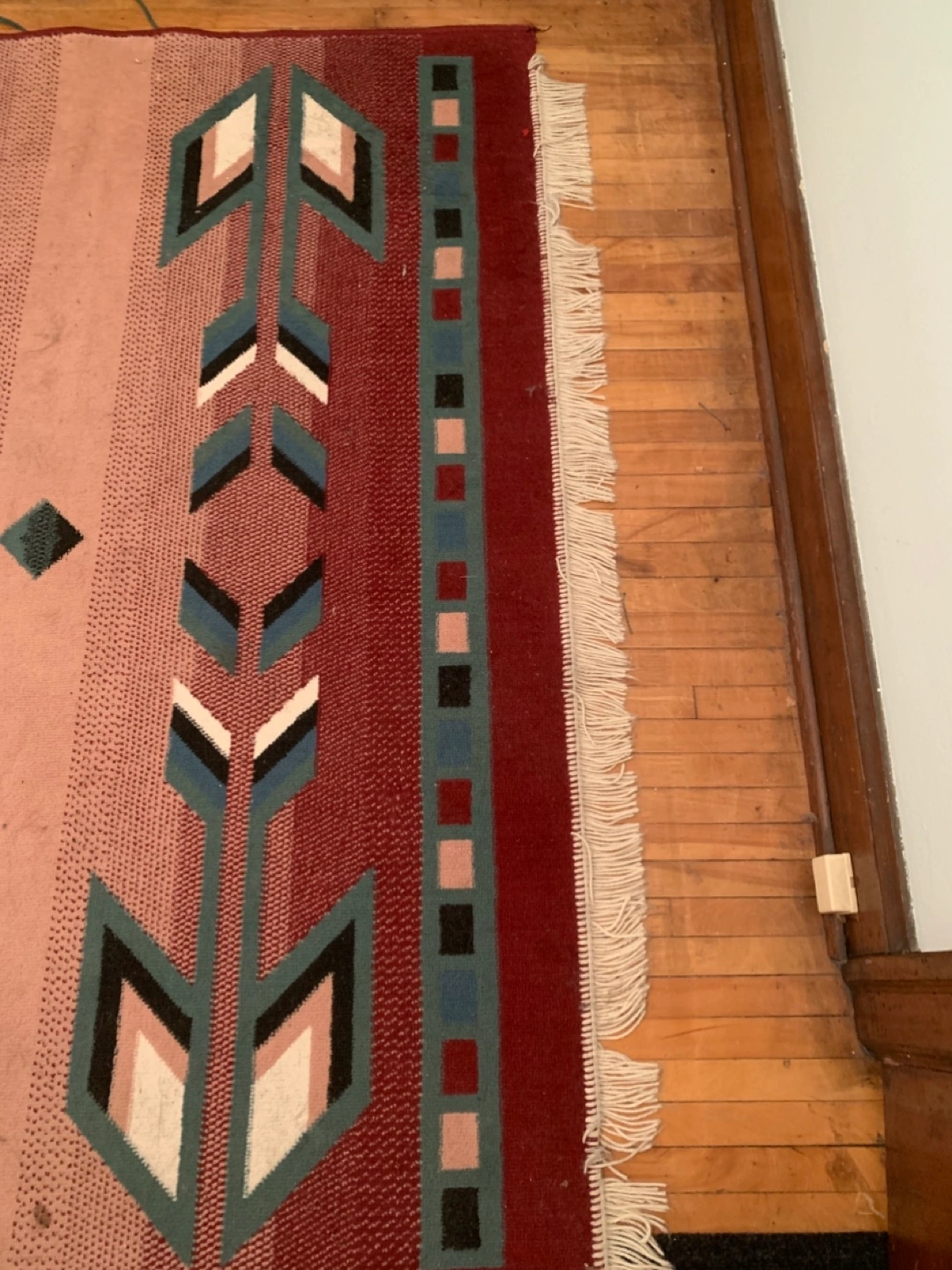 a bit of dirt missing a bit of fringe