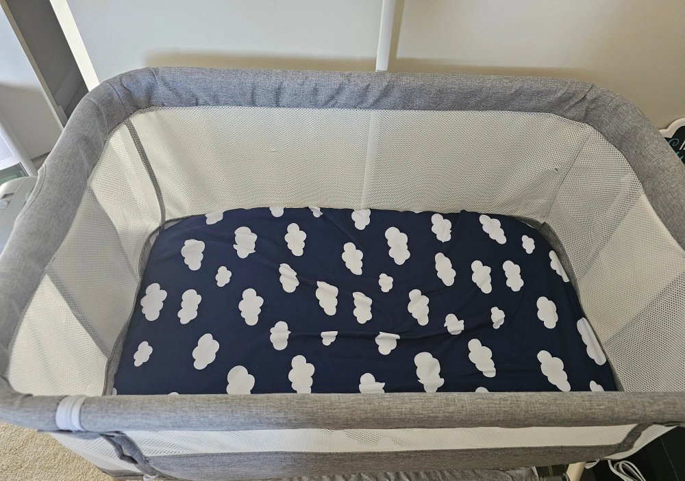 Selling a gently used baby bassinet in great condition! It's a lovely grey colour. Perfect for your little one's first few months. https://a.co/d/bEtaMa4 water proof bassinet covers and cotton bassinet covers are free if you purchase