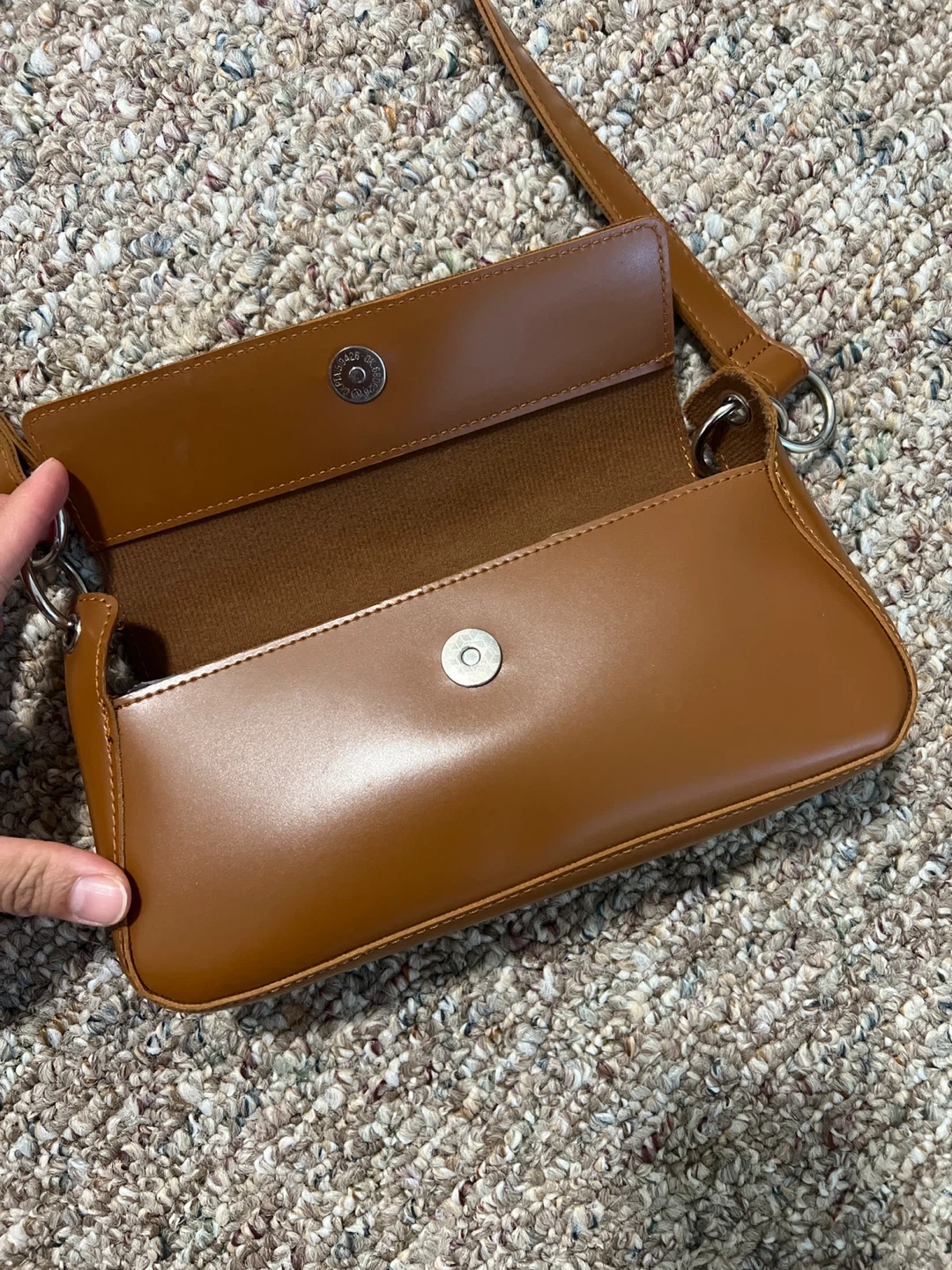 This is a cute brown shoulder bag in great condition! It's perfect for carrying your essentials and adding a touch of style to any outfit. The bag features a sleek design with a magnetic closure.
