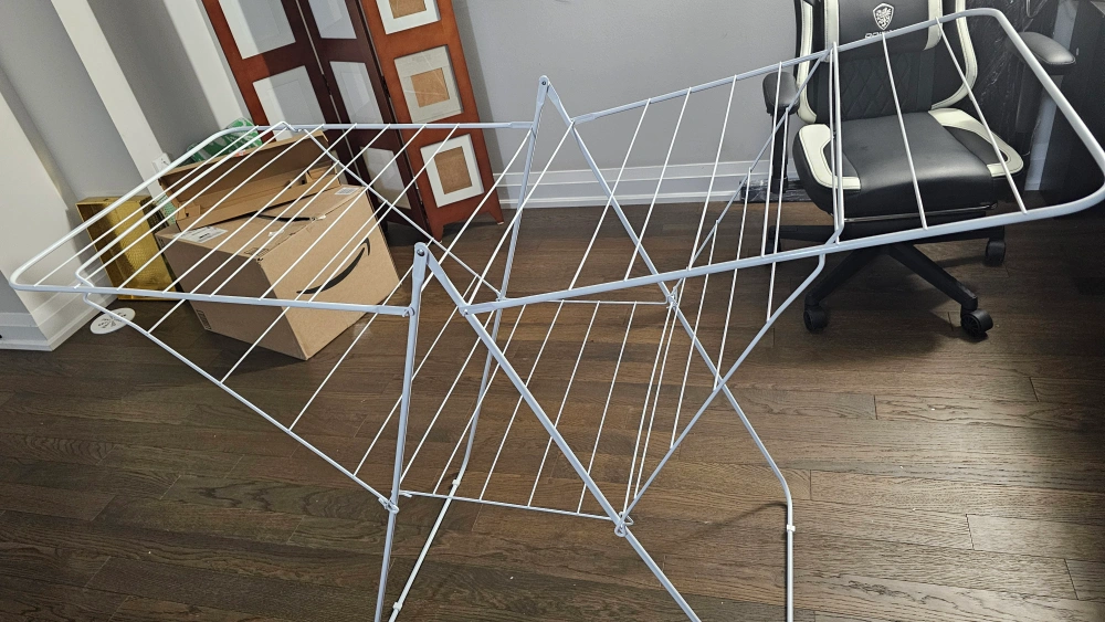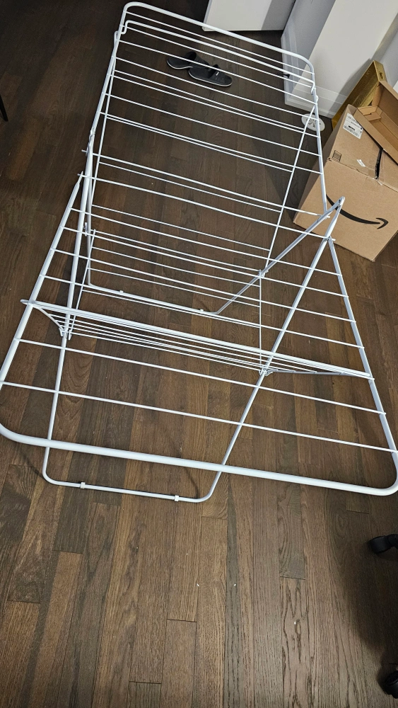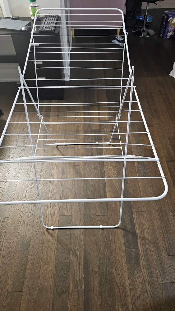 Selling a white folding clothes drying rack. It's in great shape and ready to help you save on dryer costs! Perfect for apartments or homes where space is at a premium, this rack folds up easily for storage when not in use