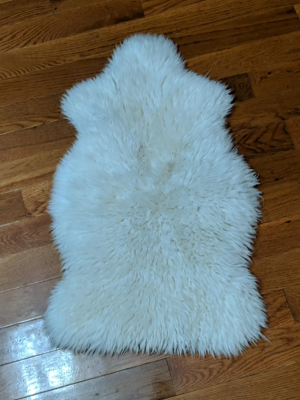 Selling a cozy white sheepskin rug! It's in great condition and would add a nice touch to any room. Perfect for adding some warmth and texture to your space