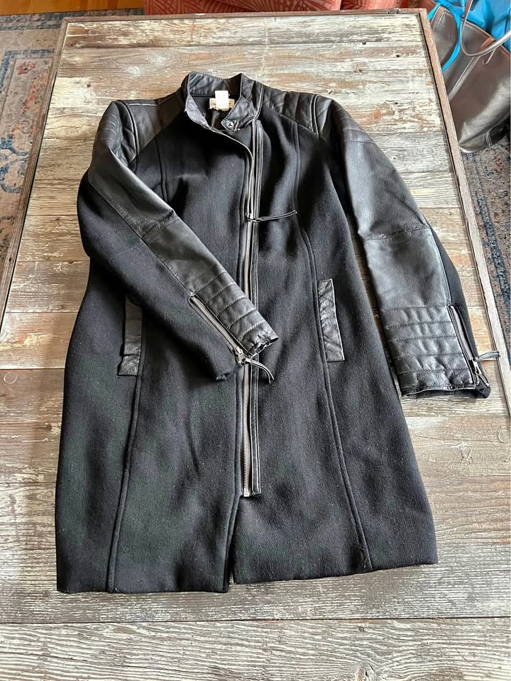Ellos Moto Coat Jacket Black Wool & Faux Leather Sz 12 US