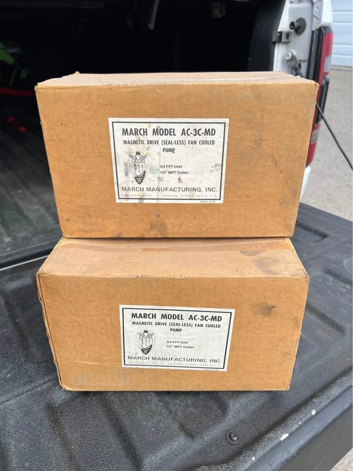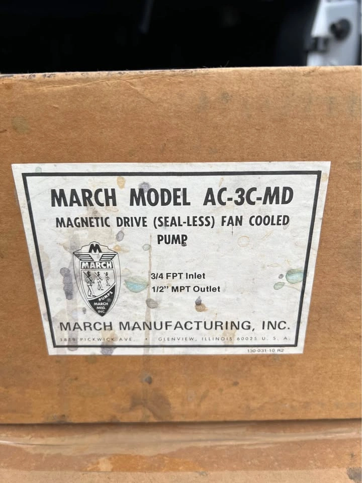 OPEN TO OFFERS March Pumps model AC-3C-MD magnetic drive fan cooled (seal-less) 3/4 FPT inlet 1/2 MPT outlet 150$ each or $400 for all three
