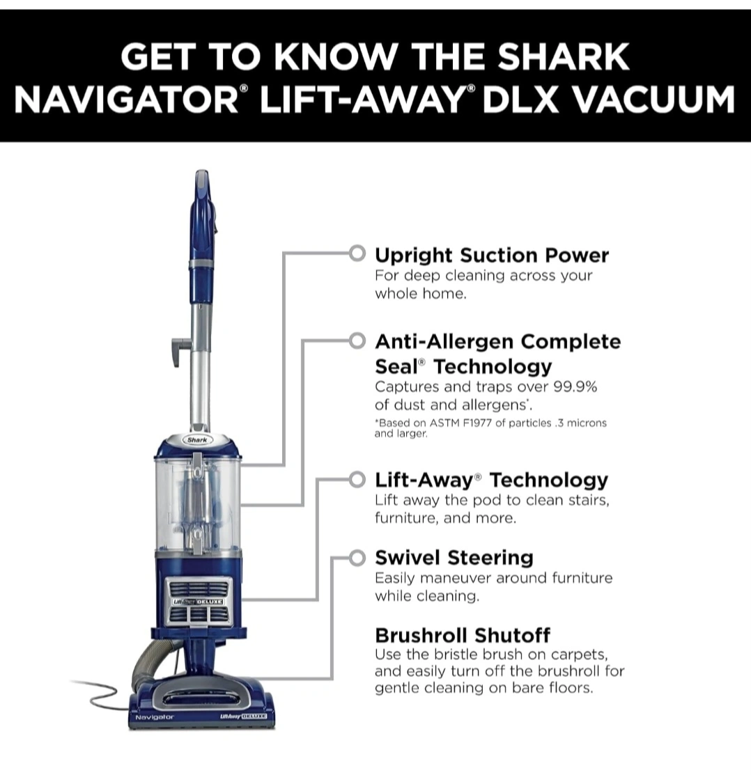111Looking to sell my Shark Navigator Lift-Away DLX vacuum! It features: - Upright suction power for deep cleaning - Anti-allergen complete seal technology - Lift-away technology for cleaning stairs and furniture - Swivel steering - Brushroll shutoff