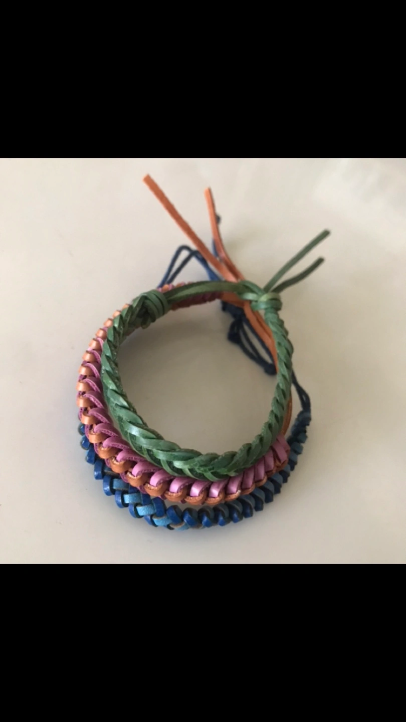 From Lisbon, Portugal! ————————— ☀️3 Colorful Leather Bracelets from Portugal Perfect for your easy breezy Summer look! Set of 3 beautiful, colorful, braided leather bracelets. 3 vibrant colors reminiscent of the sunny Mediterranean!