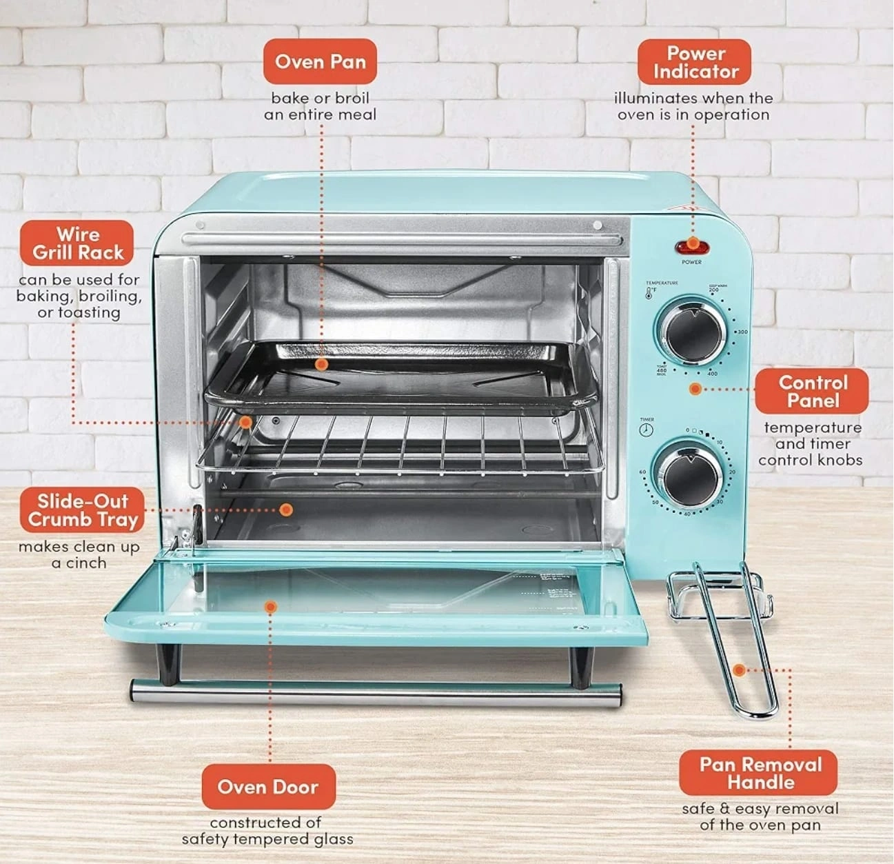 111Looking to sell a mint-coloured Americana Toaster Oven. It's in great shape and ready for a new home. Key features include: - Oven pan for baking or broiling - Wire grill rack for baking, broiling, or toasting - Slide-out crumb tray for easy cleanup - Temperature control from 200°F to 480°F - 60-min timer with auto shut-off and a stay-on feature Dimensions: 9.5" x 14.5" x 11" Originally bought for $93.38 open box