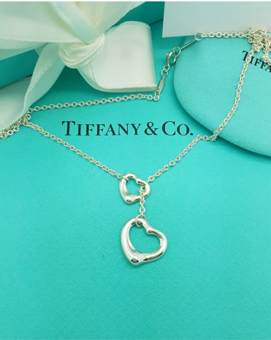 Tiffany Elsa Peretti Open Heart Lariat Necklace 925