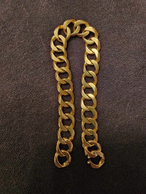 Stunning 14k Solid Italian Gold Curb - Material: 14k solid Italian gold, paved, diamond cut design - Length: 8.5 inches - Width: 20mm - Weight: 34grams - Price: $3,500 This exquisite bracelet showcases exceptional craftsmanship and style. Its diamond cut design and substantial weight make it a statement piece. Perfect for: - Special occasions - Everyday luxury - A thoughtful gift Contact: Won't Respond To Is This Still Available. Serious inquiries only please.