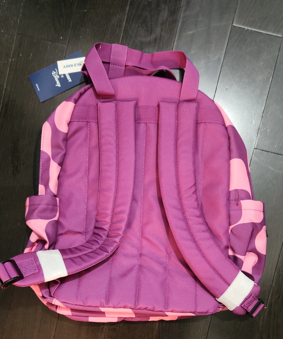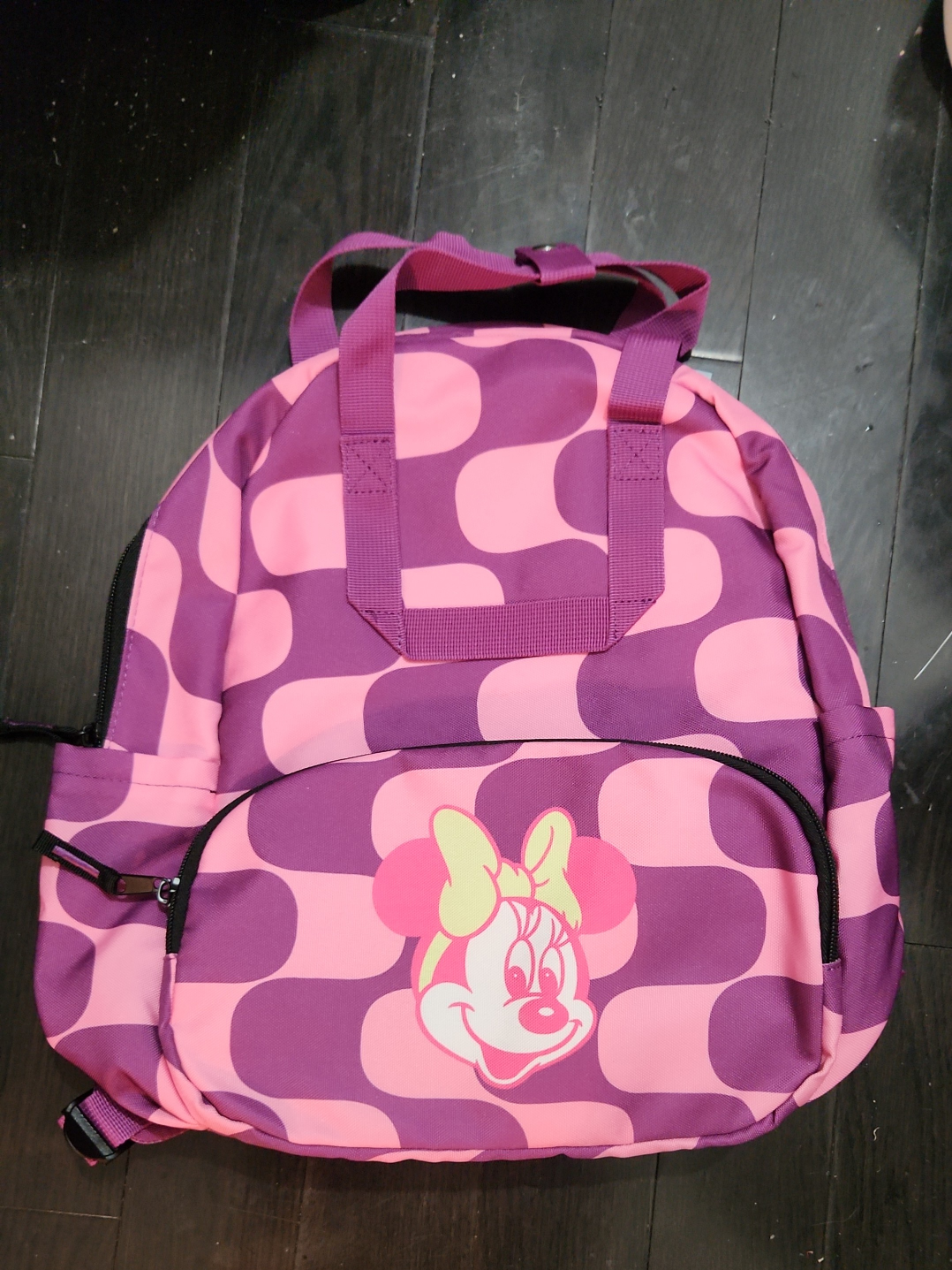 Check out this adorable Disney Minnie Mouse backpack from Old Navy! It features a fun pink and purple polka dot pattern and Minnie Mouse's face on the front pocket. Perfect for your little one!