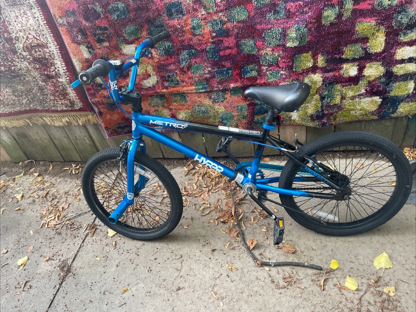 Selling a blue Hyper Metro BMX bike. It's in good condition and ready for some action! Perfect for hitting the skate park or cruising around the neighbourhood.