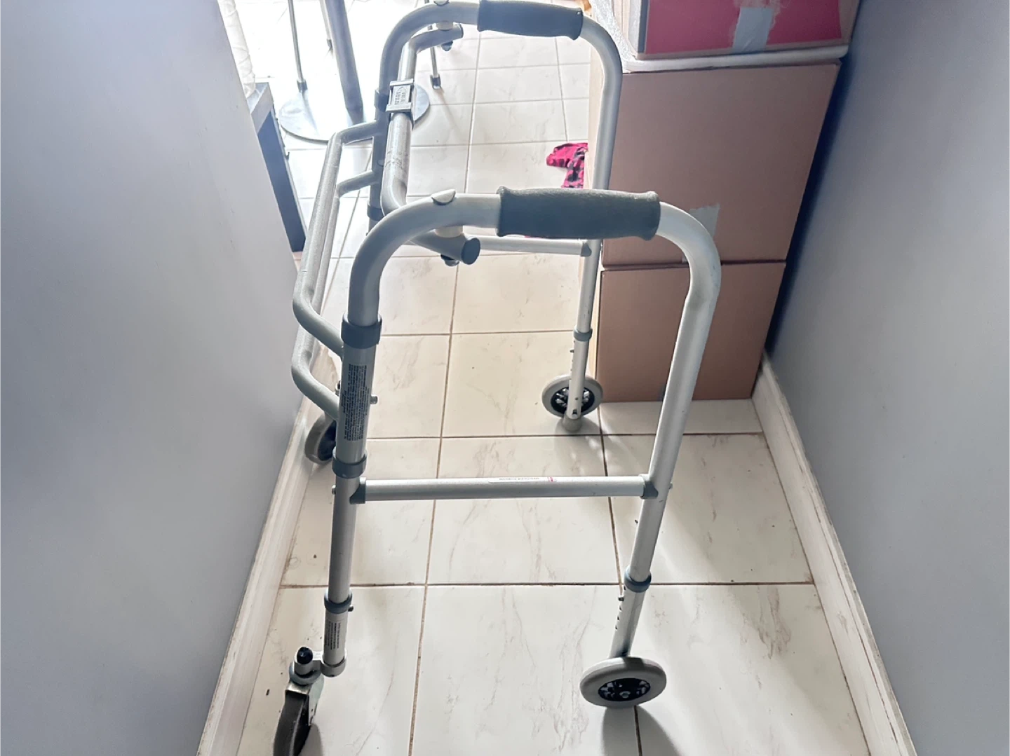 Selling a rolling walker. It's in good condition and ready to assist someone who needs it. This walker is lightweight and easy to manoeuvre, providing stability and support for walking. It's a practical aid for enhanced mobility and independence
