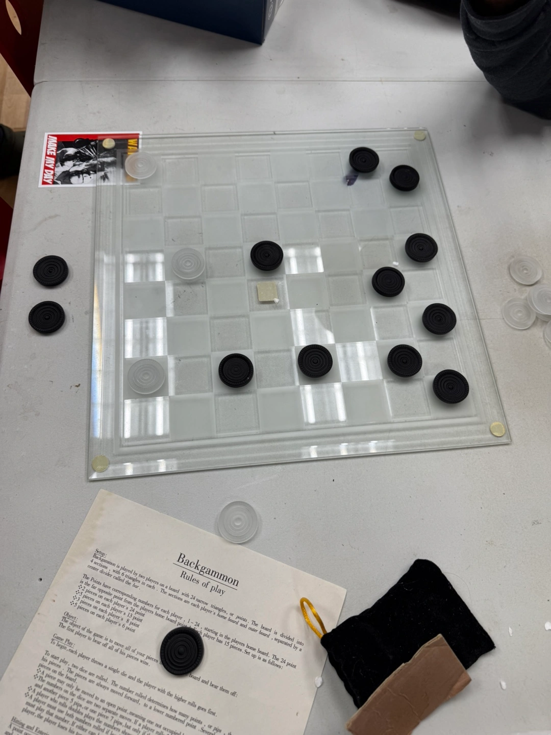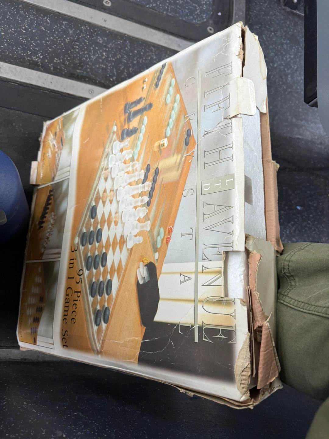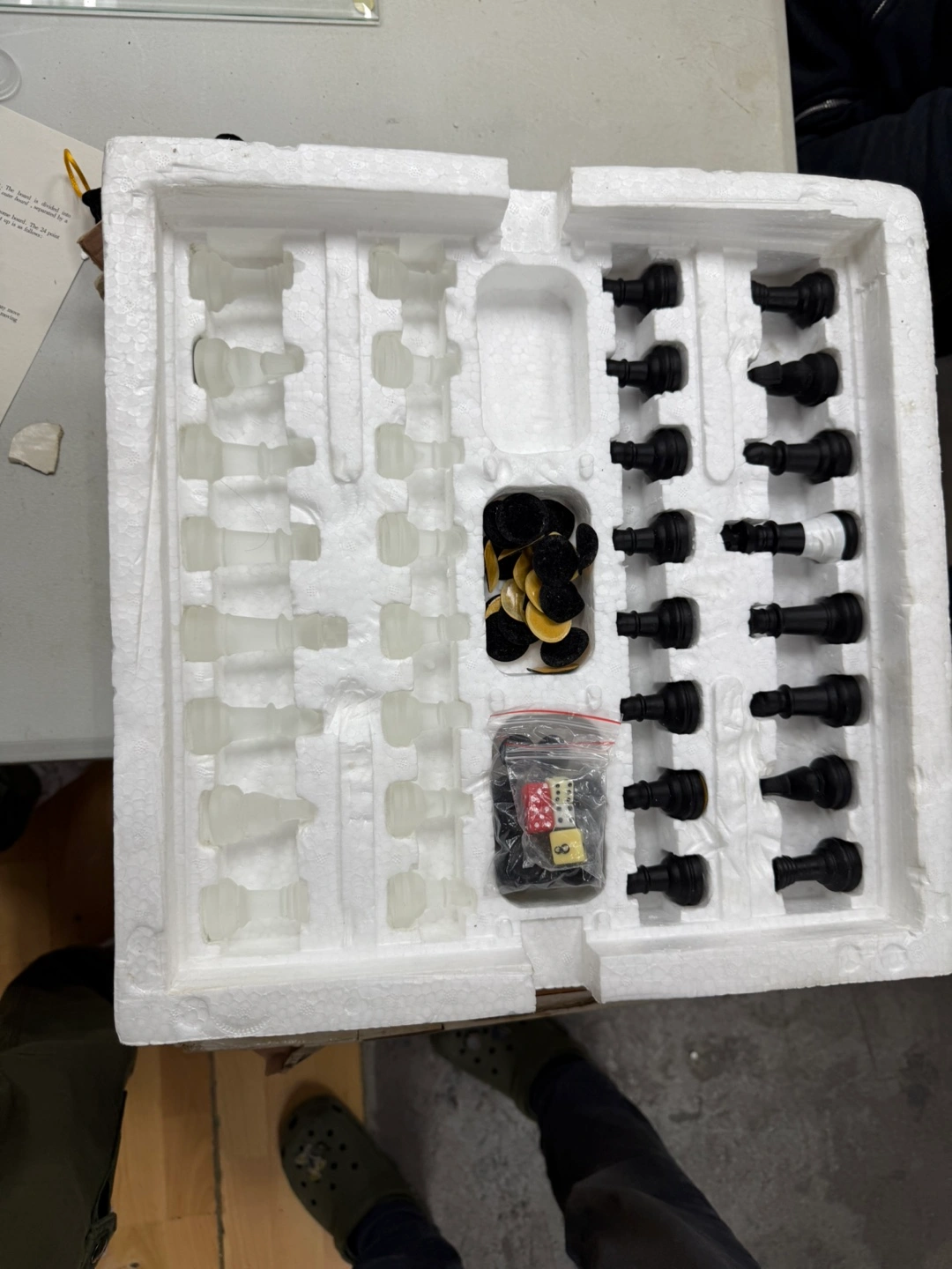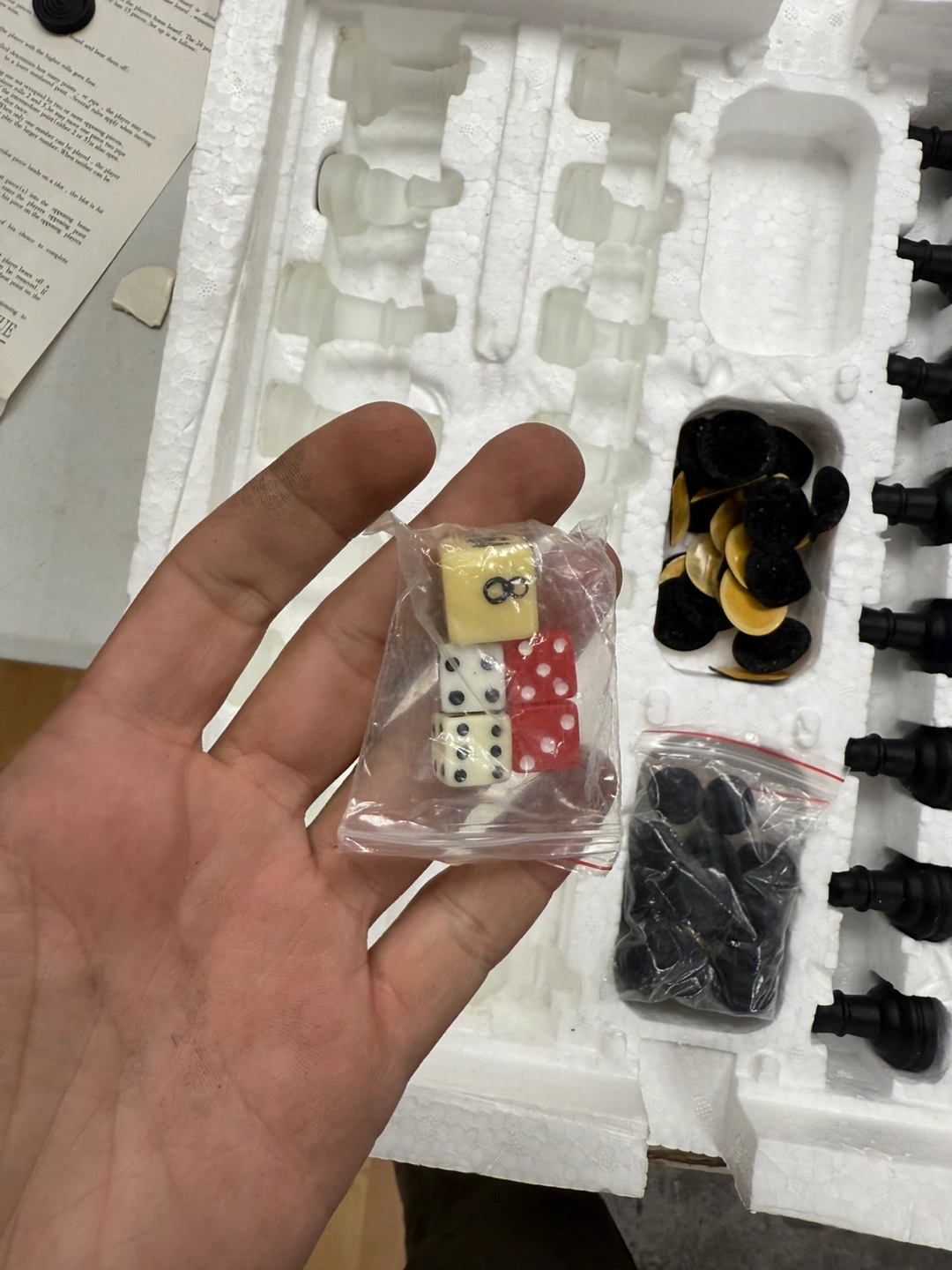 Selling a complete game set that includes chess, checkers, and backgammon! All pieces are included, and it comes with the original box and instructions and its all GLASS