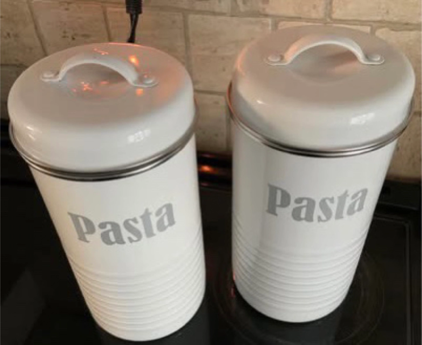 Selling a set of two white pasta canisters. They're in great shape and perfect for keeping your pasta fresh and organized in the kitchen. Typhoon Kitchen Pasta Canisters