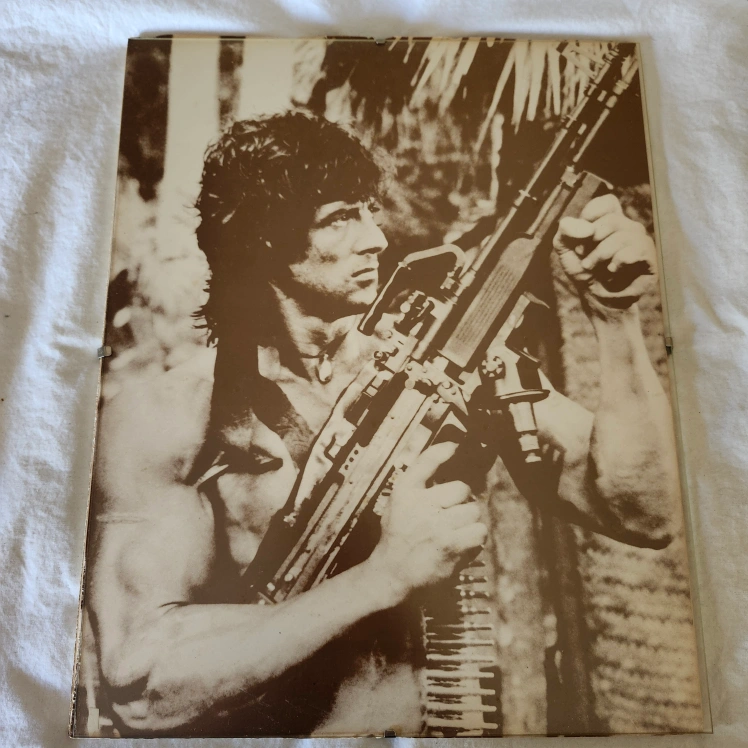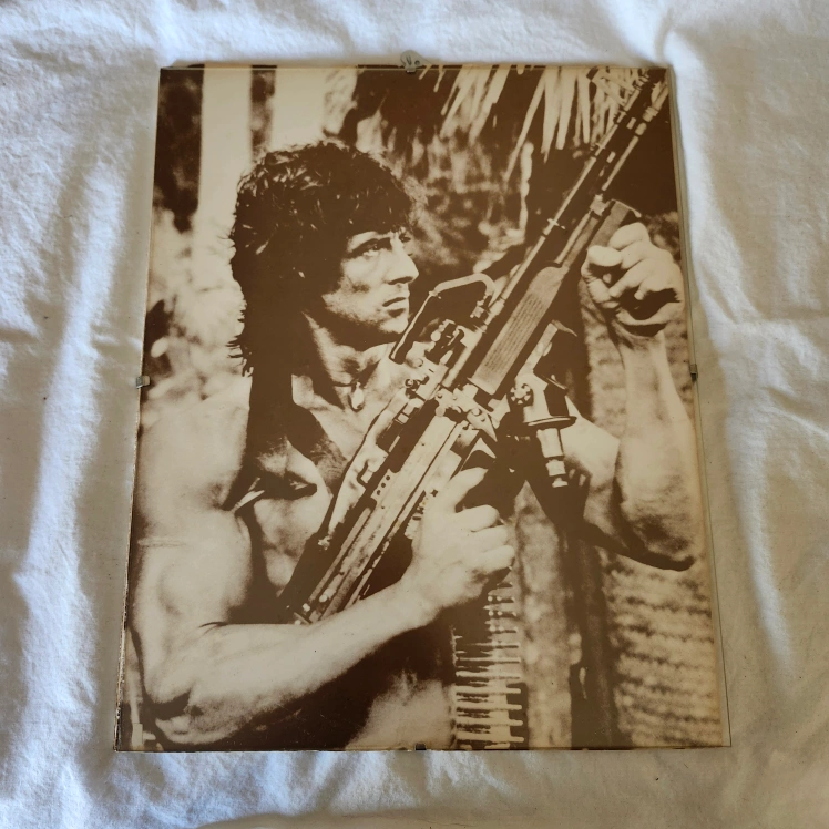 Selling a framed art print of Rambo. It's in good condition and ready to hang in your home or office. Perfect for fans of the classic action movie!