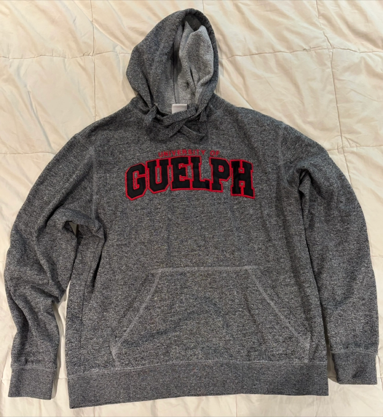Selling a University of Guelph hoodie in grey! It's in great condition and ready for a new home. Perfect for showing your school spirit or just staying cozy on those cooler days