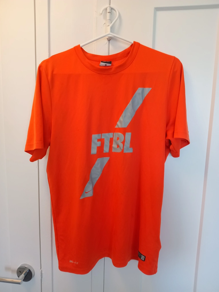 I'm offering a couple of athletic t-shirts in great condition. One is a bright orange Nike Dri-FIT shirt with 'FTBL' design, and the other is an Adidas Response shirt in blue. Both are size large and perfect for workouts or casual wear!