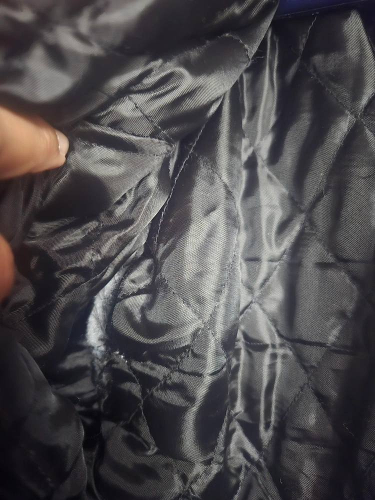 small wear on sleeve and by zipper. small tear on inside liner, quick fix.