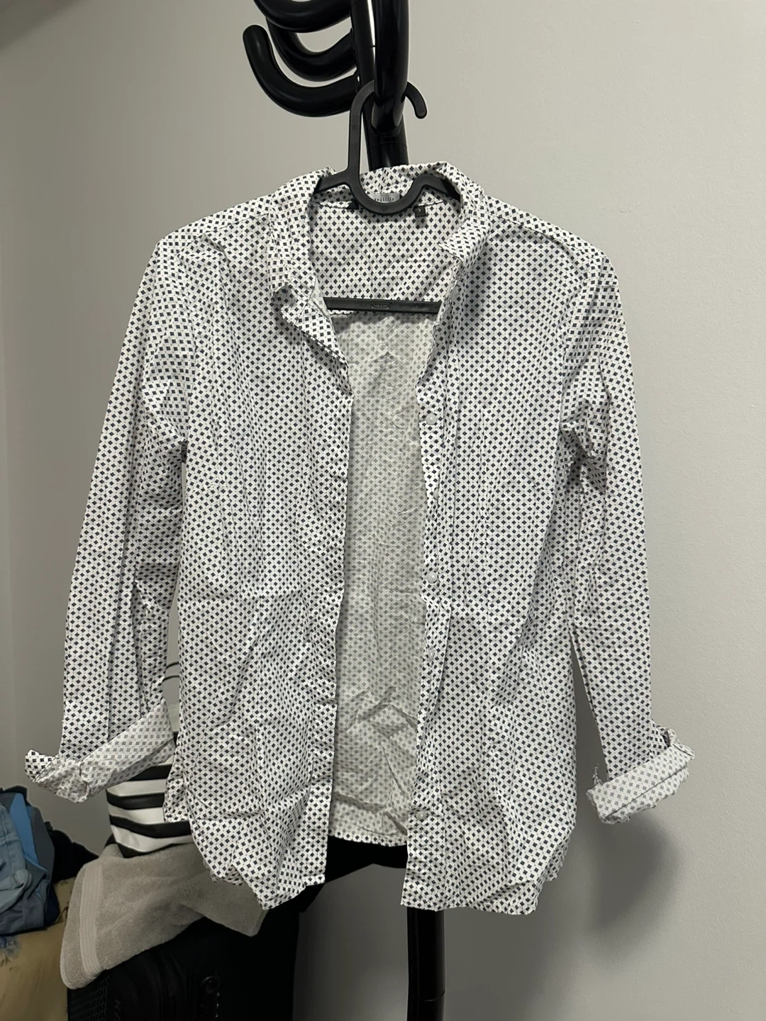 141Here's a long-sleeved shirt with a cool pattern! It's in great shape and ready for a new home