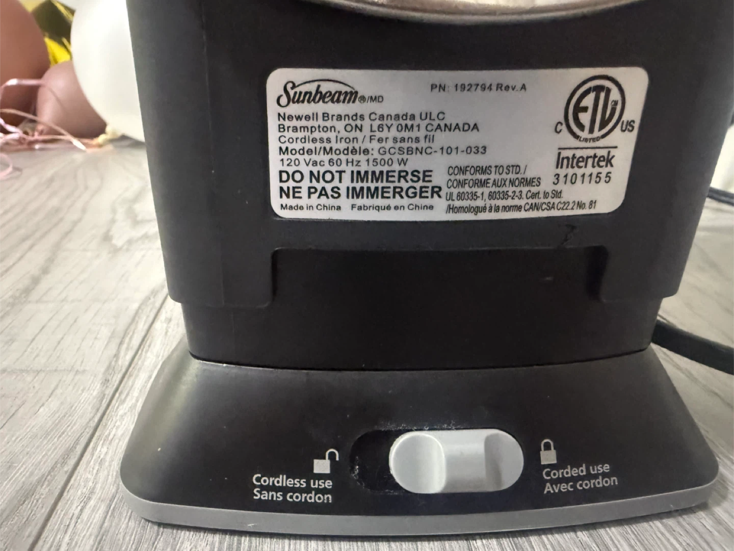 Sunbeam Cordless Iron