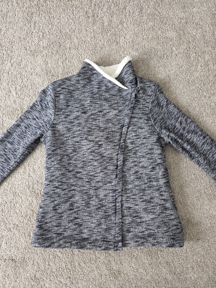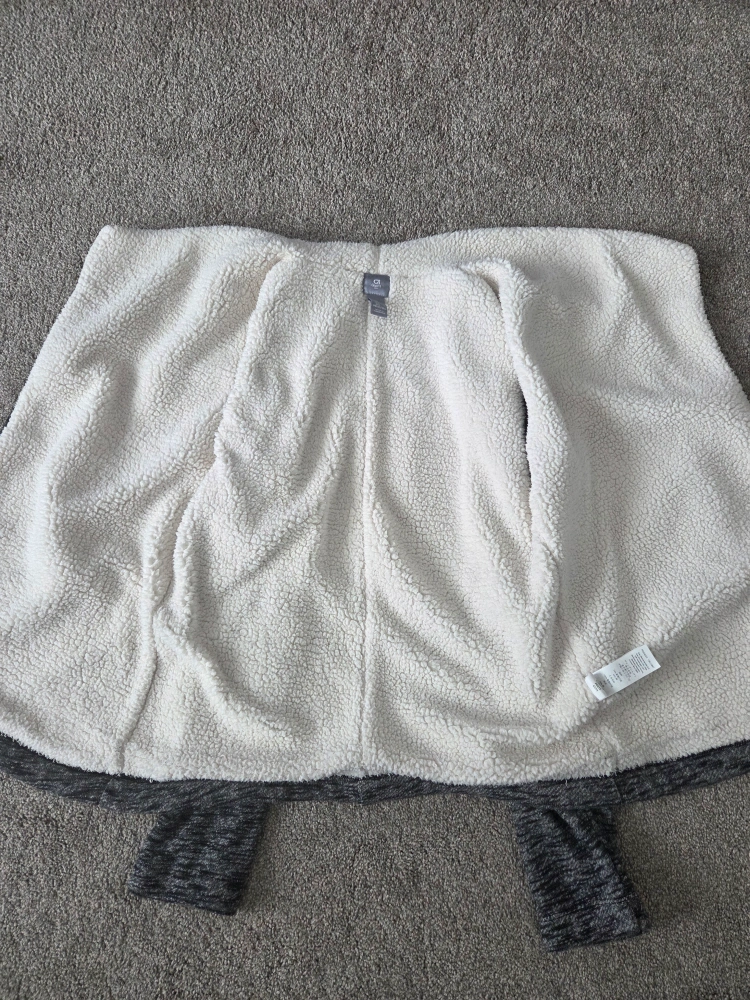 Cozy up in this Gray GapFit jacket! It's a size small and features a soft sherpa lining to keep you warm. Perfect for layering on chilly days! no pet, no smoke home.