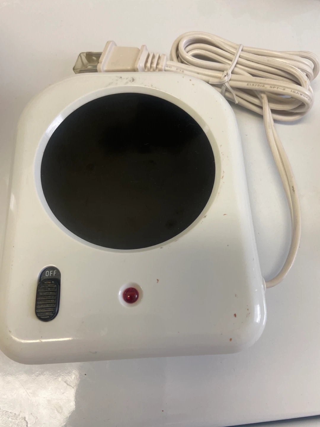 Selling a white mug warmer! It's perfect for keeping your coffee or tea nice and warm while you work or relax. It has an on/off switch and a light to let you know when it's on. Great for home or office use!