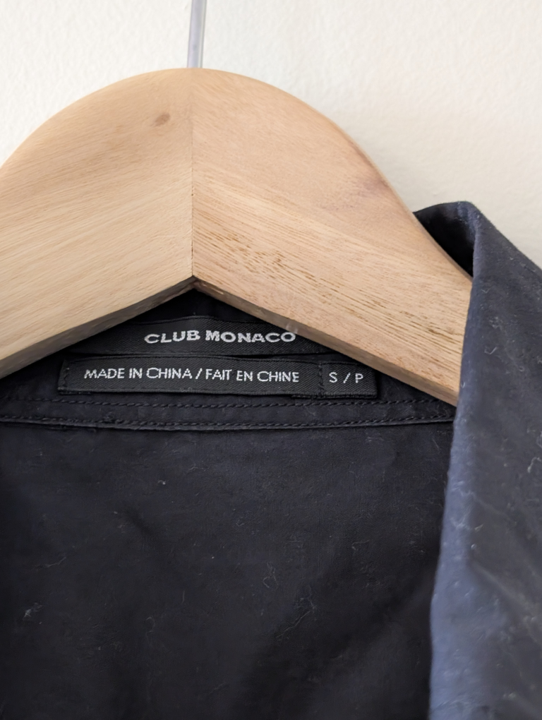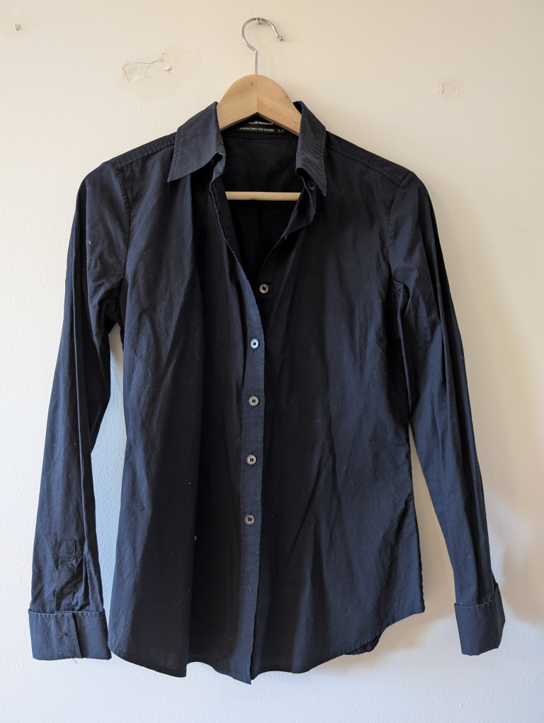 A gently used Club Monaco black button-up shirt in size small! It's a classic piece that can be dressed up or down. Perfect for any occasion!