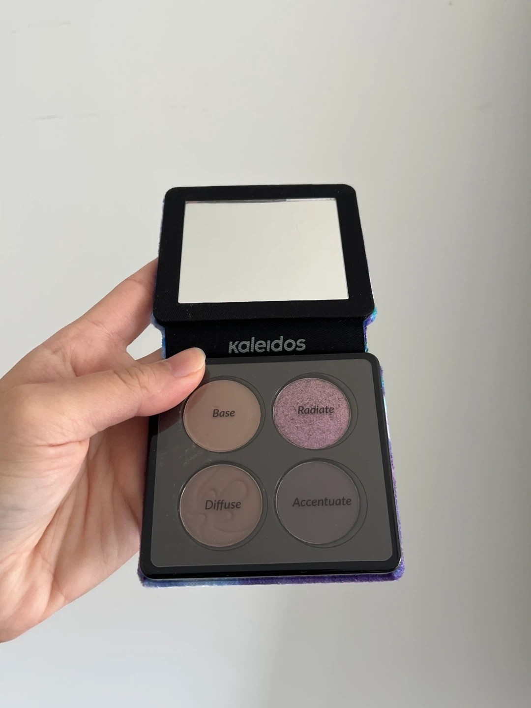 Selling a Kaleidos Flowing Haze Quad Palette! The palette has four beautiful shades: Base, Radiate, Diffuse, and Accentuate. The packaging is a lovely blue and purple colour. Perfect for creating a variety of eye looks!
