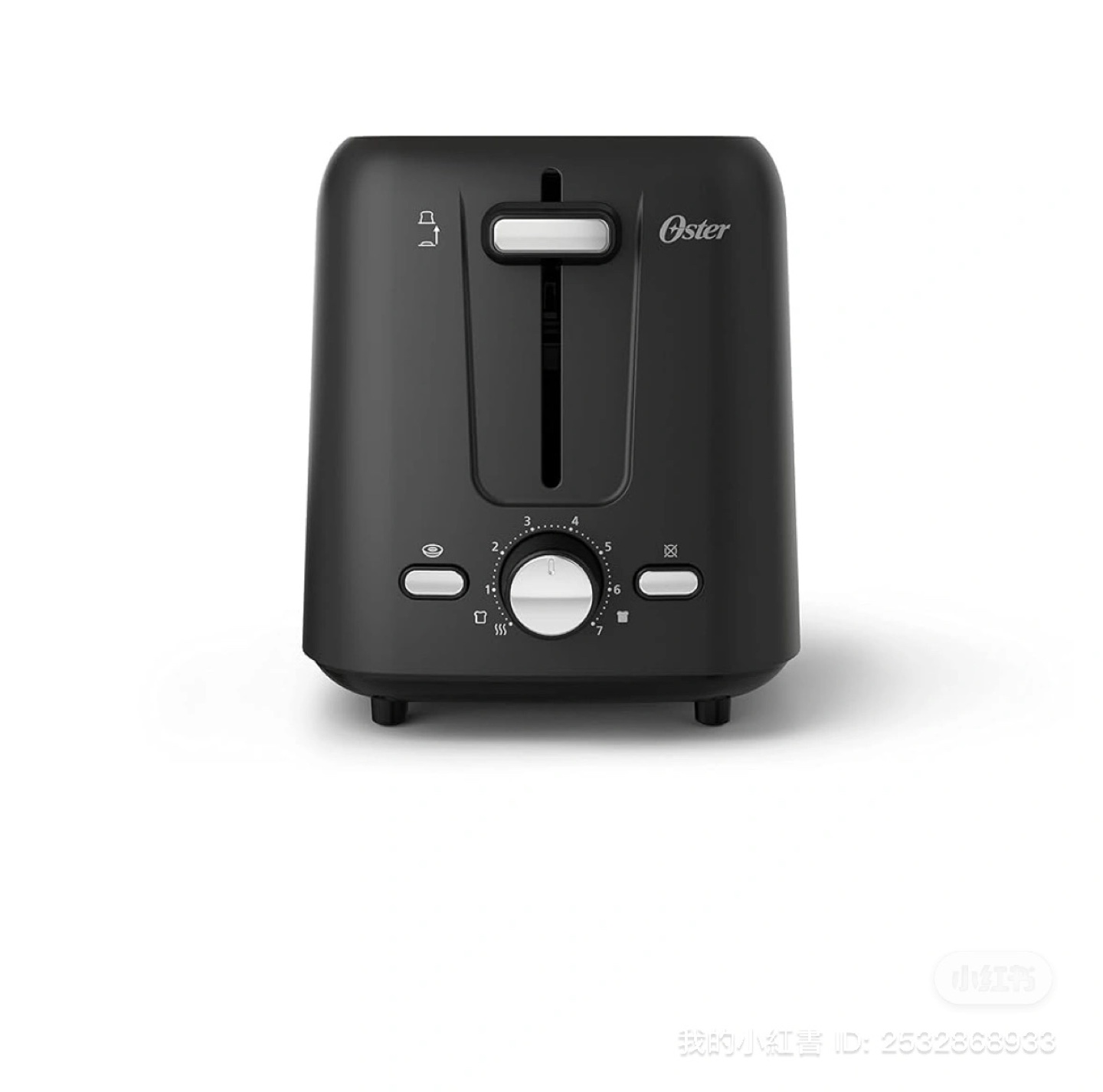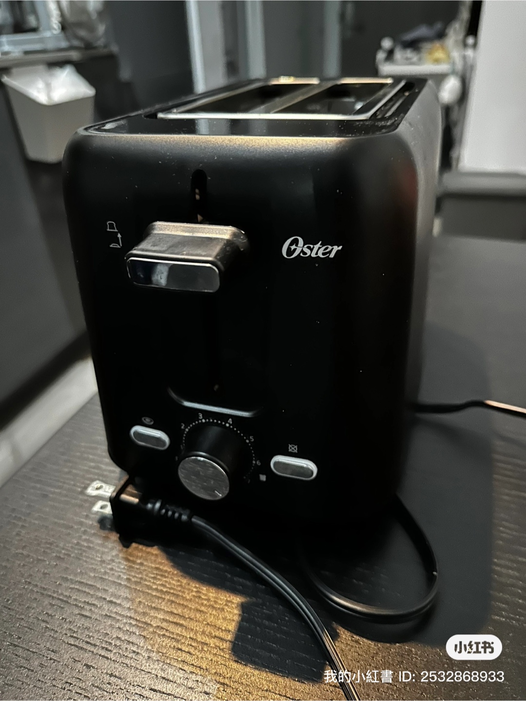 Selling a black Oster toaster. It's in good working condition and perfect for making toast or bagels. Dimensions are approximately 26cm x 18cm x 18.5cm