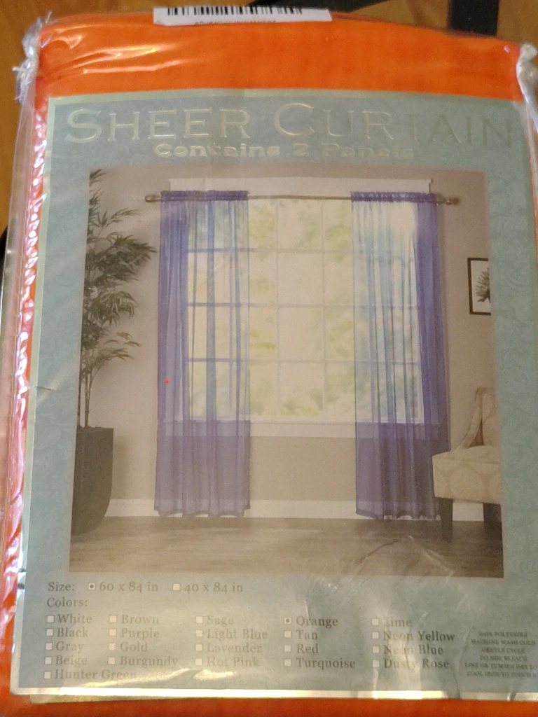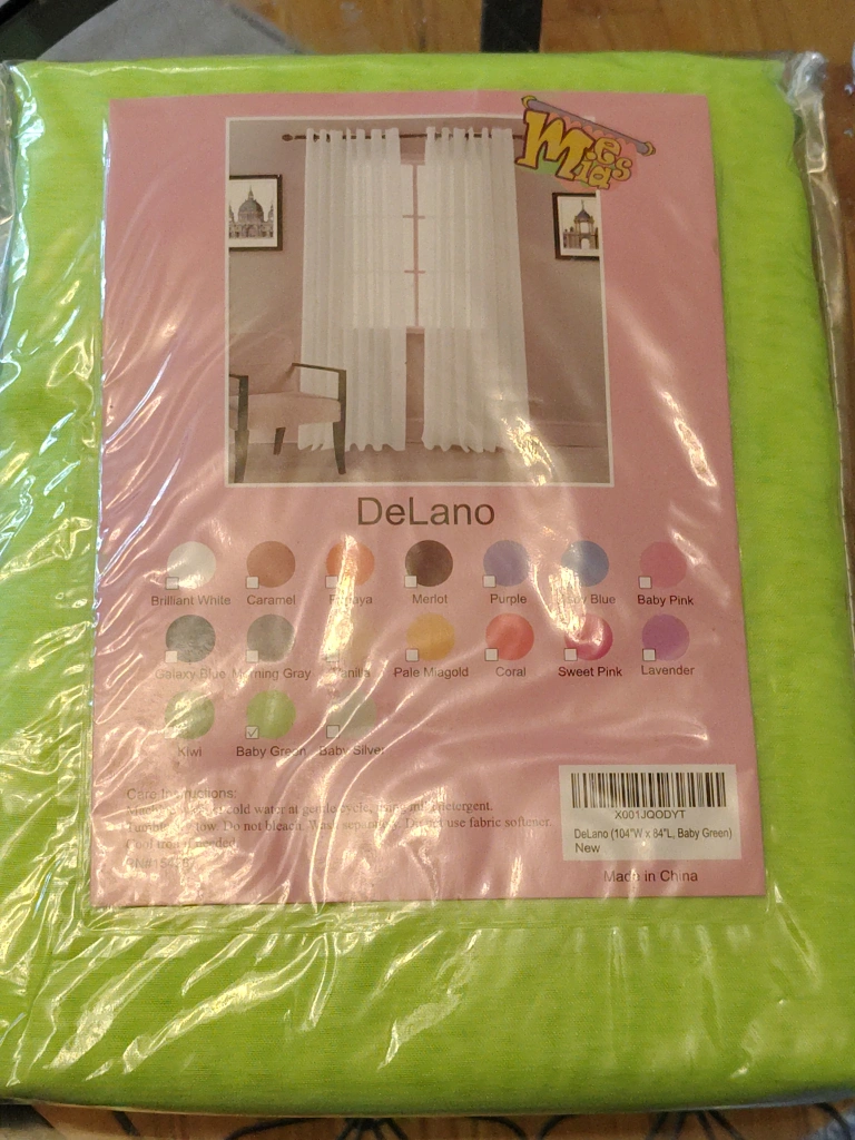 I'm selling a brand new DeLano curtain in Baby Green and also available in orange! It's sized at 104 inches wide by 84 inches long. The packaging is still sealed, so it's in perfect condition and ready to brighten up your space. set of 2