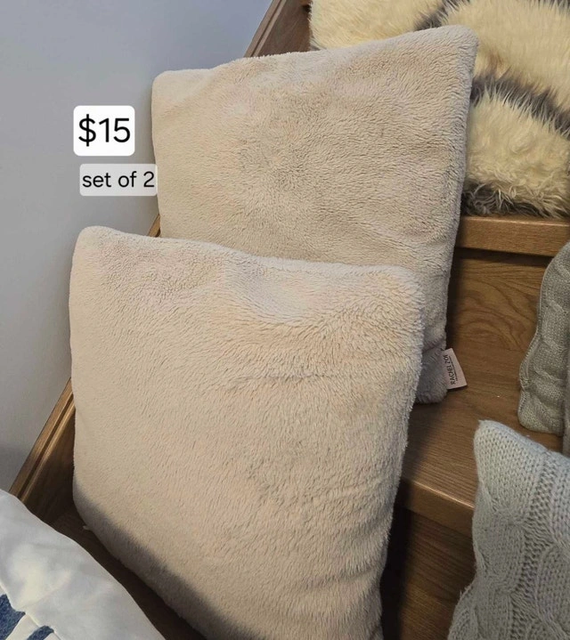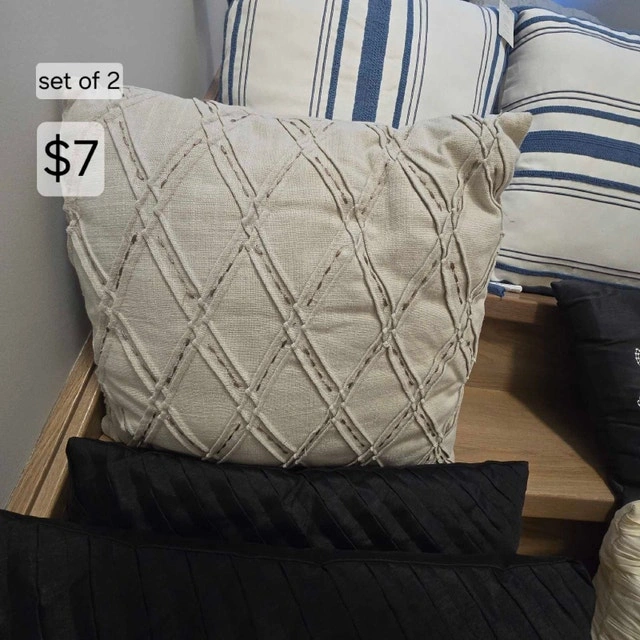 Enhance the aesthetic of your living space with a selection of decorative pillows. Each piece designed to bring both comfort and style to any room. Discover a variety of textures and patterns that will perfectly complement your existing decor. These charming accents are an ideal way to refresh your home's ambiance. Explore the collection and find the perfect additions to elevate your surroundings. See photos for prices. More items for sale. Please see my page.