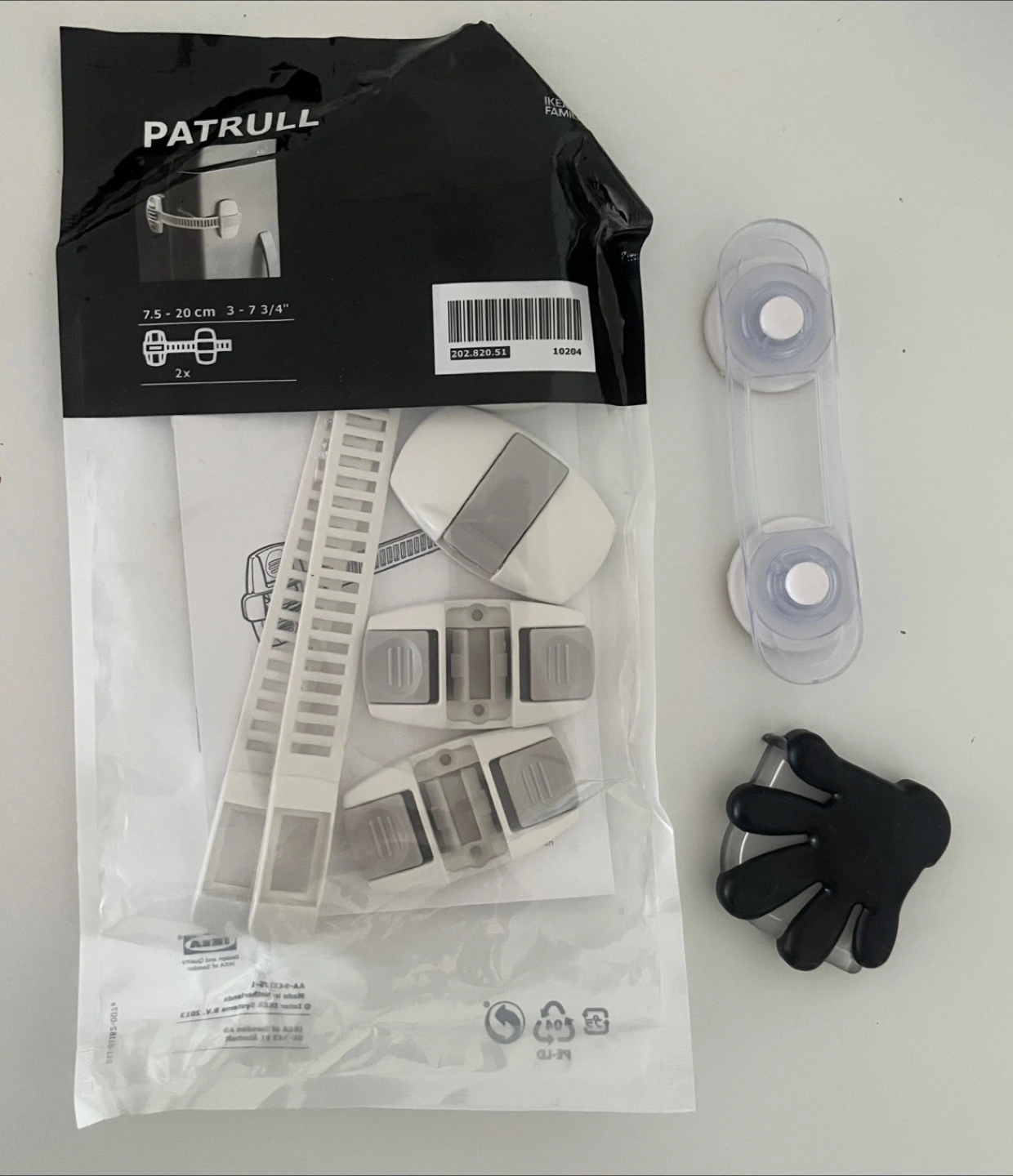 Selling a set of IKEA Patrull child safety locks. These are brand new and still in the original packaging! Includes various types of locks to keep your little one safe. The package indicates they fit cabinet doors and drawers from 7.5-20 cm (3-7 3/4")