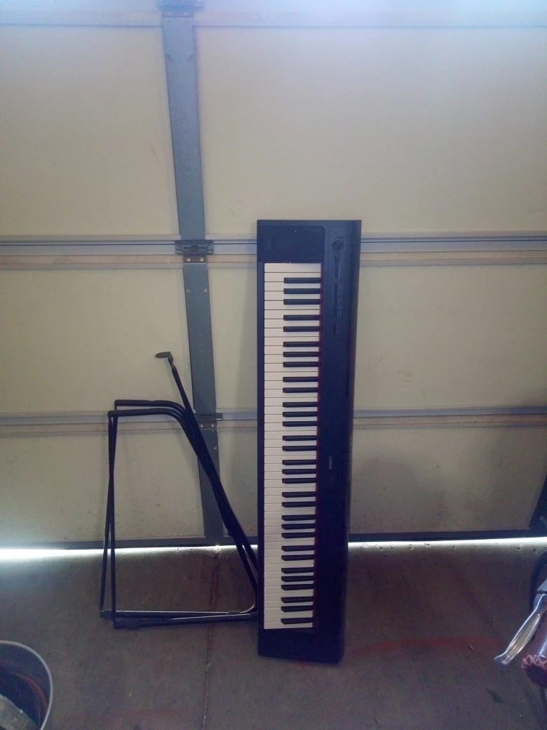 digital piano keyboard that's perfect for anyone looking to start learning or upgrade their current setup. It comes with a stand, so you'll have everything you need to start playing right away plz text thru app
