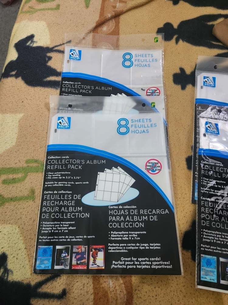 Selling MCP Collector's Album Refill Packs! Each pack contains 8 sheets, perfect for organizing your gaming cards, sports cards, or any collectible cards. The sheets are made of clear polypropylene and are acid-free for safe storage. Each pocket measures up to 3.5" x 2.75" (9 cm x 7 cm). Great for keeping your collection in top shape!