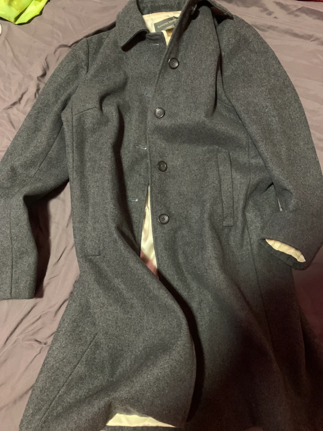Here's a Banana Republic coat in a lovely grey colour. It's made from a wool blend and is perfect for keeping warm during the colder months. It's in great condition and ready for a new home!